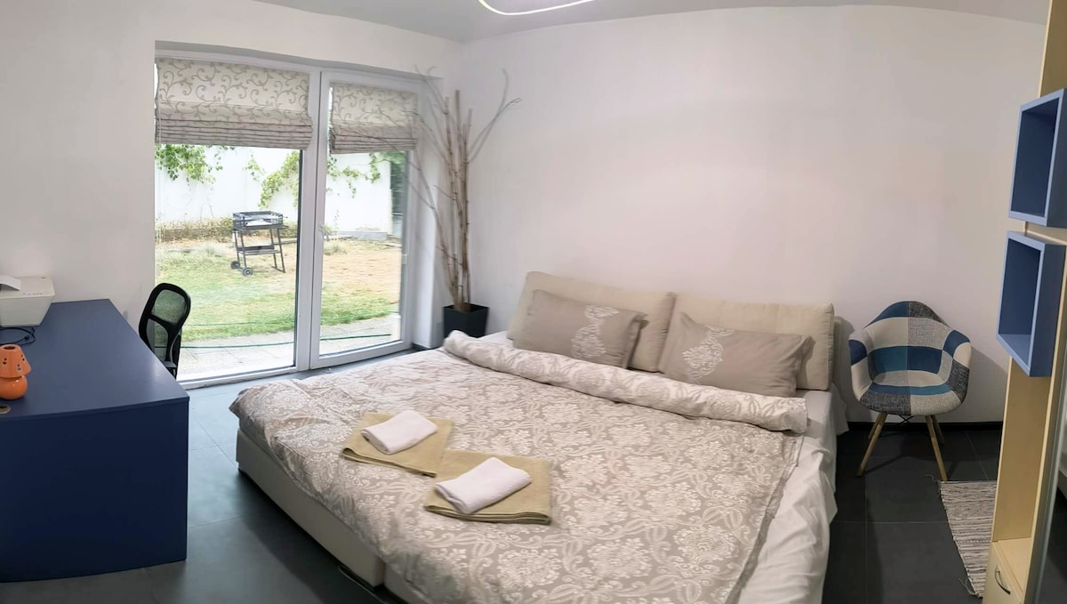 A short drive from Business Park, Mladost, Ma-Bebe PlayHouse is a stylish and friendly space, 5 min walk to Pancharevo lake ✨Rent the first floor of a family guest house: 60 sqm designer open space with football table and toy sets Lego, PawPatrol, HotWheels 🌿Kitchen and bedroom 🌸Garden, BBQ and playground Groceries Thermal swim facilities Pedal boats Tennis court Restaurants On requests we host 4 hours long baby parties or gatherings for up to 14 adults 💰290 BGN Mon-Fri | 470 BGN Sat-Sun