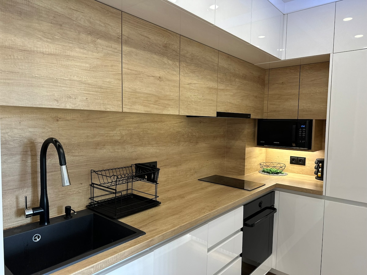 Welcome to a spacious, modern 2-bedroom apartment designed for both relaxation and productivity. This bright and stylish home offers everything you need for a comfortable stay. - Near Sofia Airport - Private parking space Enjoy breathtaking city skyline and mountain views, a cosy living area, and top-notch amenities tailored for short- and long-term stays. The building is fully accessible and friendly for people with special needs, ensuring a seamless experience for all guests.