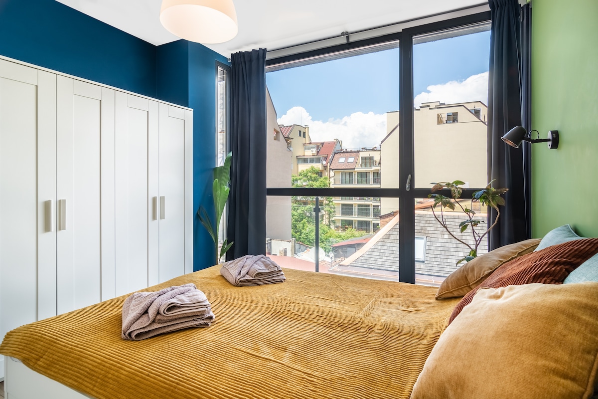 Enjoy a bright and stylish apartment in the heart of Sofia’s historic center! Relax in a cozy space with artistic touches and beautiful morning light from the French windows while you have your coffee. Perfect for both vacation and work stays — the apartment includes fast 300 Mbps internet and a comfortable work area. Step outside and explore Sofia’s authentic atmosphere at the nearby farmer’s market — the city’s largest, full of local charm, great prices, and creative energy.