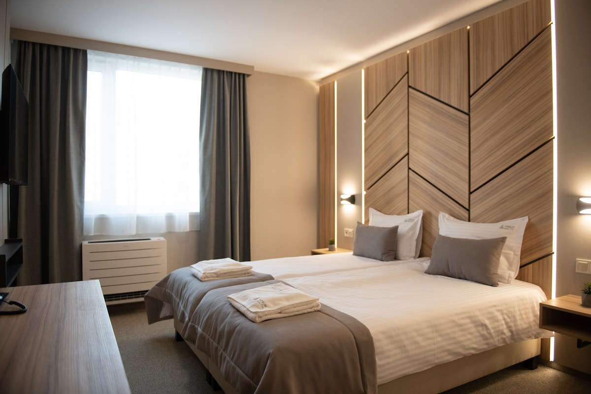 Почувствайте се като у дома си в Хотел Новита! Чисто нов 4 звезден хотел с модерни, просторни и уютни апартаменти с една спалня за двама гости, с напълно оборудвани кухни – фурна, котлон, пералня и съдомиялна, подходящи за семейства, бизнес и дълъг престой.Насладете се на безплатен подземен паркинг, фитнес, високоскоростен Wi‑Fi и удобна локация близо до транспорт, магазини и ресторанти. Любезният ни персонал ще направи престоя Ви незабравим. Стил, лукс и уют ви очакват в Хотел Новита!