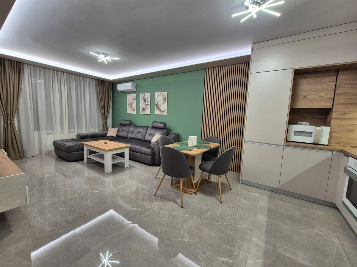 Blue Home Atana – Modern & Cozy Apartment Near Airport & Metro Stay in a stylish apartment in a brand-new building, just minutes from Sofia Airport and Druzhba metro station. The city center is easily accessible, and nearby you’ll find a green park with a lake and a large shopping center. Fully equipped for short or long stays – perfect for both business travelers and tourists. Enjoy comfort, style, and a convenient location.