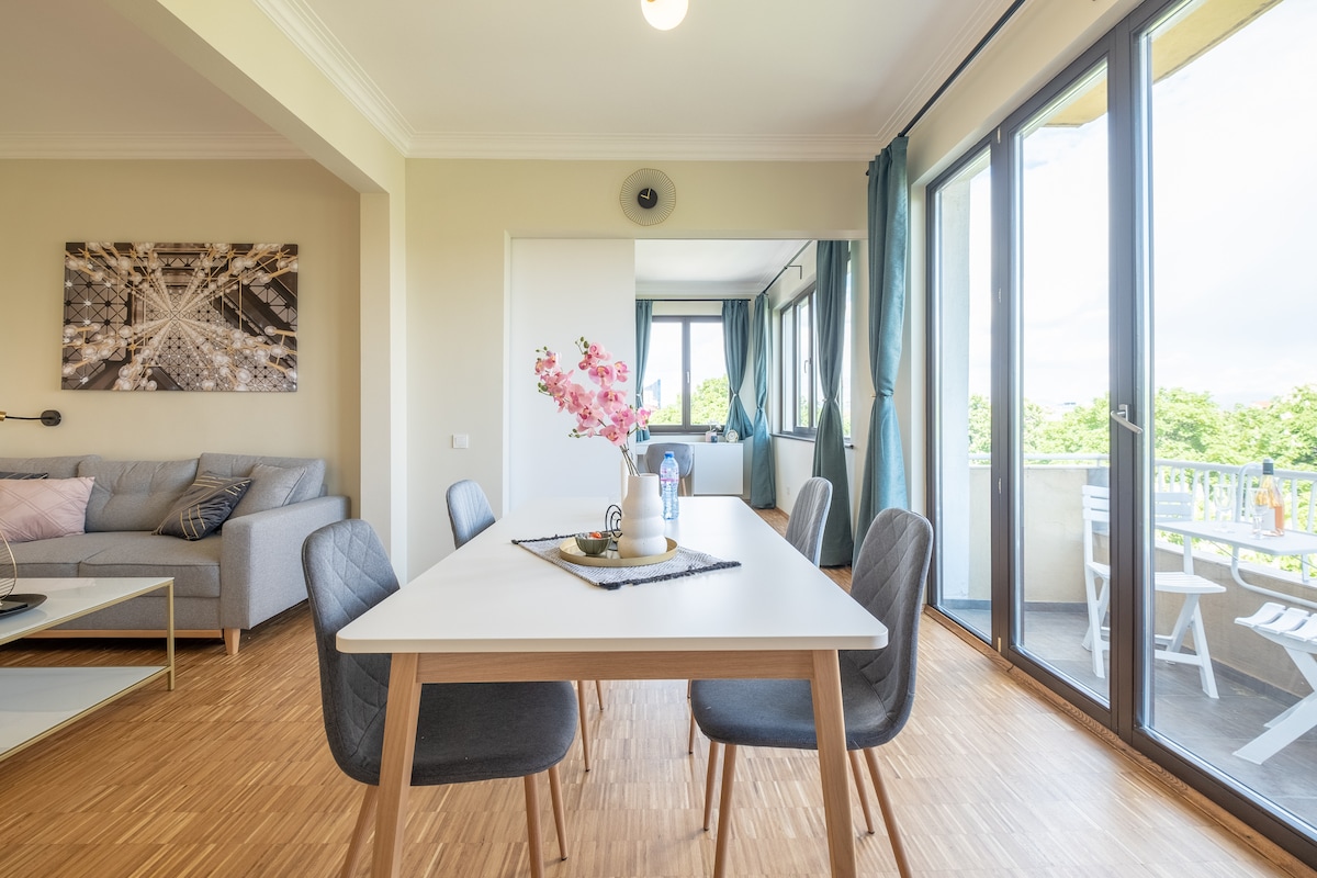 This special place is close to everything, making it easy to plan your visit. In the top center, Large terrace with panoramic view to Vitosha mountain is on your disposal so you can relax at home. Elevator in the building. Parking in the building is also available if you requested earlier. Subway is one minute away. New and maintained building surrounded by parks, nice restaurants, bars and cafes in one of the luxuries neighbourhoods in the main center.