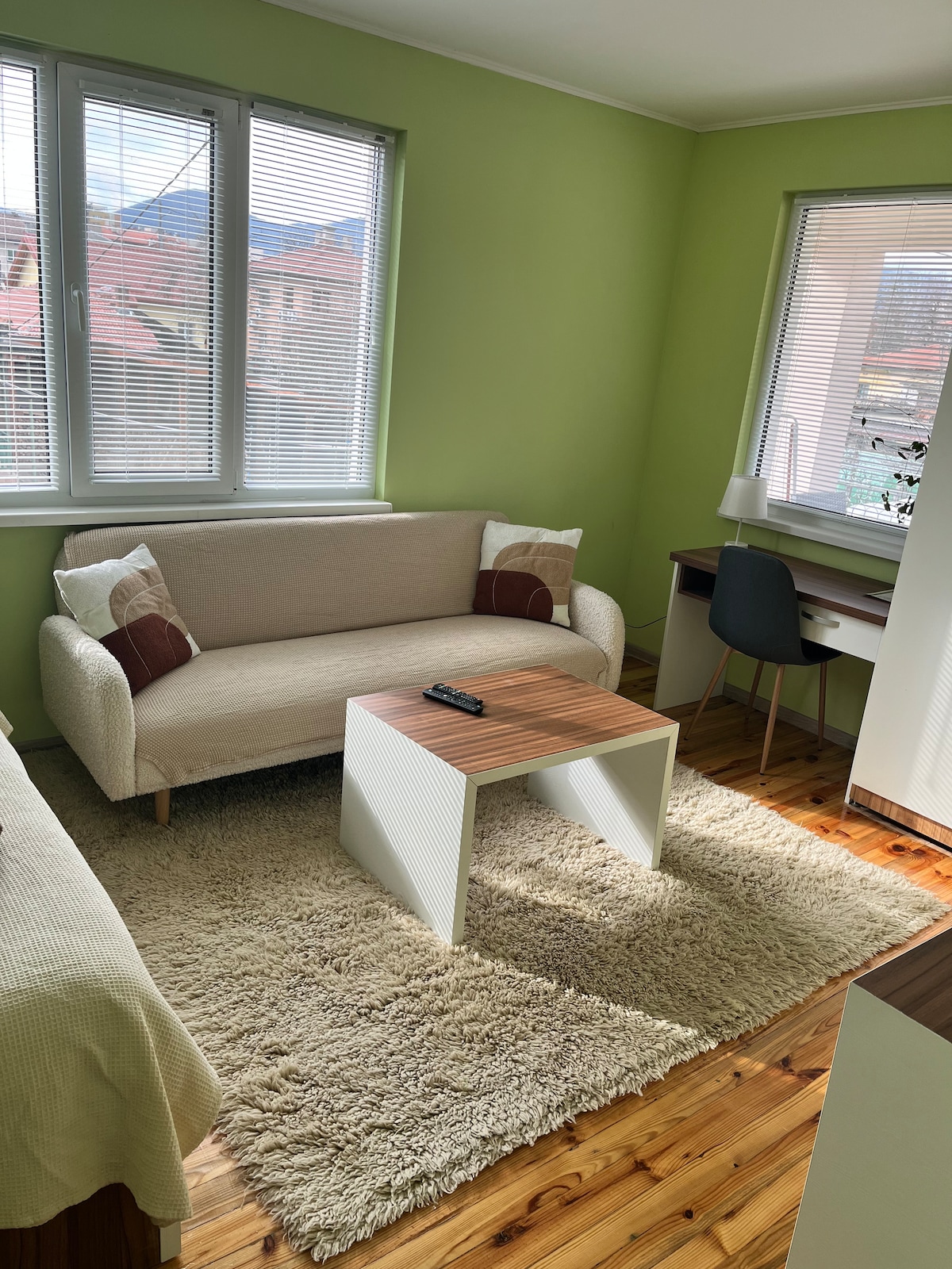 This special place is close to everything, making it easy to plan your visit. In the top center, Large terrace with panoramic view to Vitosha mountain is on your disposal so you can relax at home. Elevator in the building. Parking in the building is also available if you requested earlier. Subway is one minute away. New and maintained building surrounded by parks, nice restaurants, bars and cafes in one of the luxuries neighbourhoods in the main center.