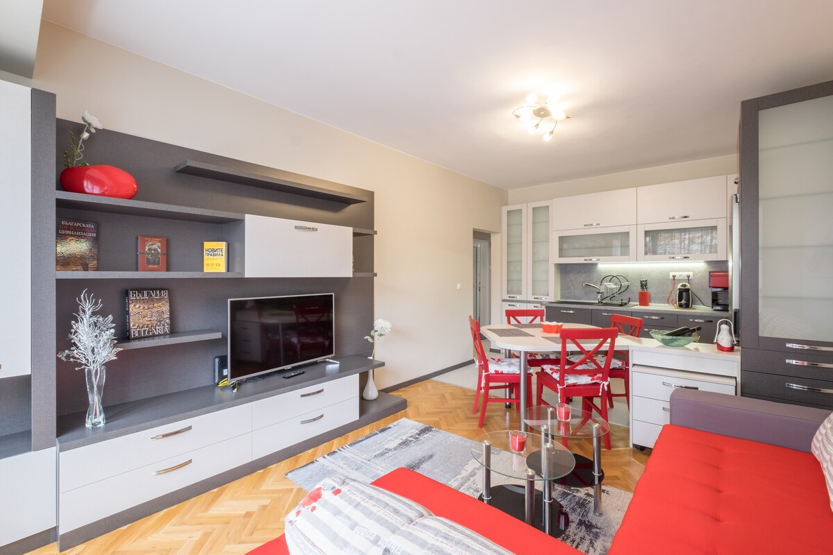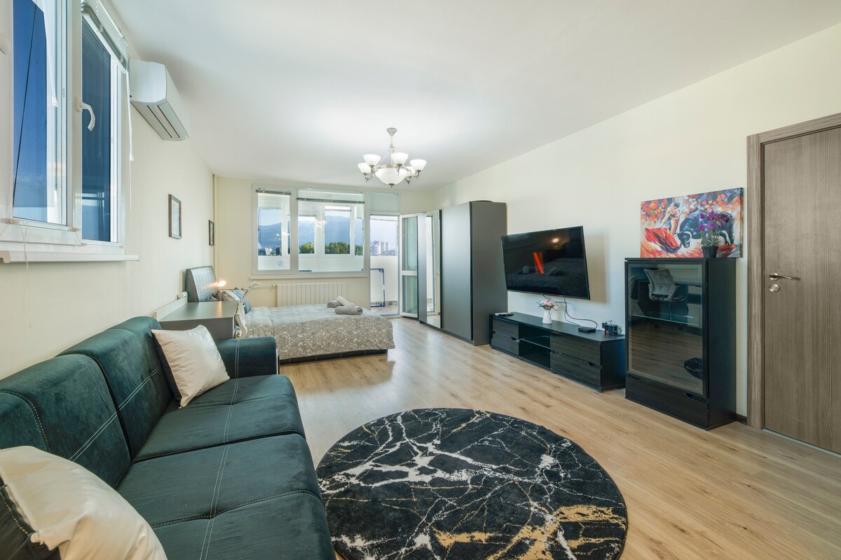 Enjoy this incredible view directly to Vitosha mountain. A cozy private stay in the heart of the city. It is very close to the main pedestrian street "Vitosha boulevard", the busiest and most famous Boulevard to Sofia, due to the large number of shops, cafes and good restaurants that are concentrated here. Equipped with everything needed, this space is a perfect starting point for your trip in Sofia. IMPORTANT NOTE: There is no TV.