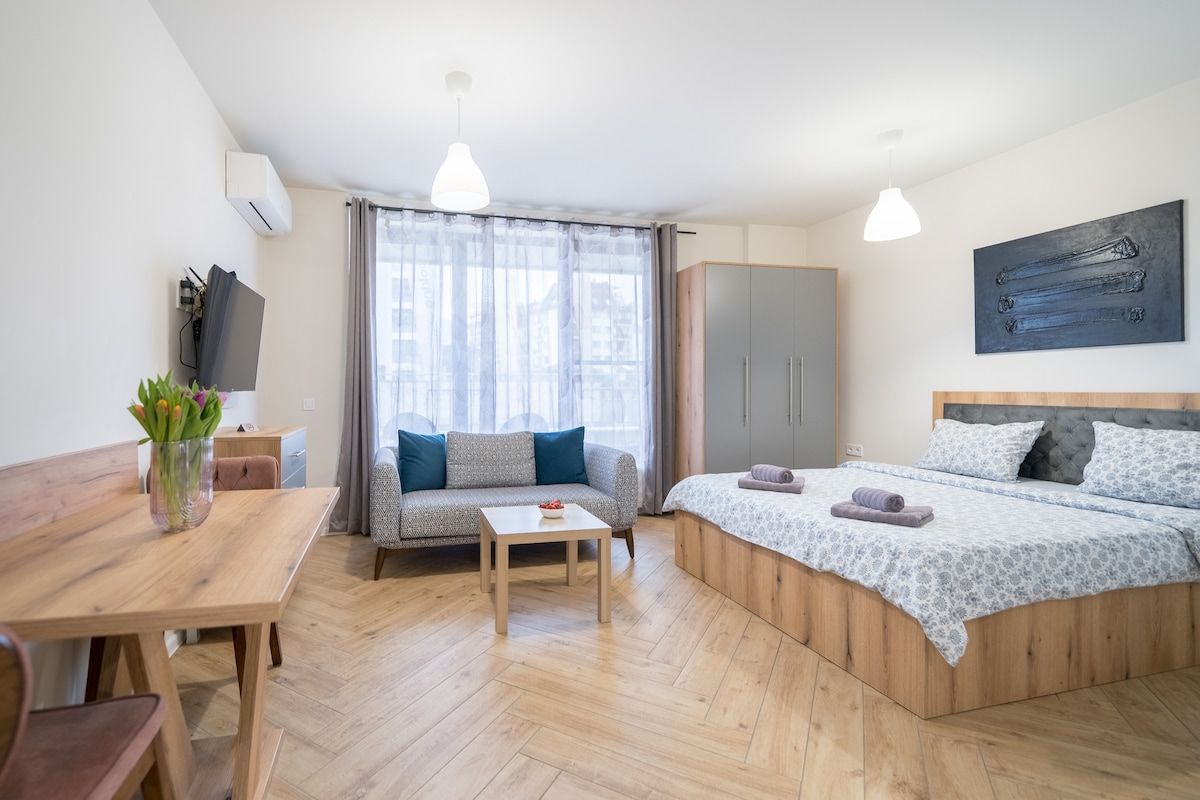 阳光明媚的单间公寓,带露台,毗邻NBU
