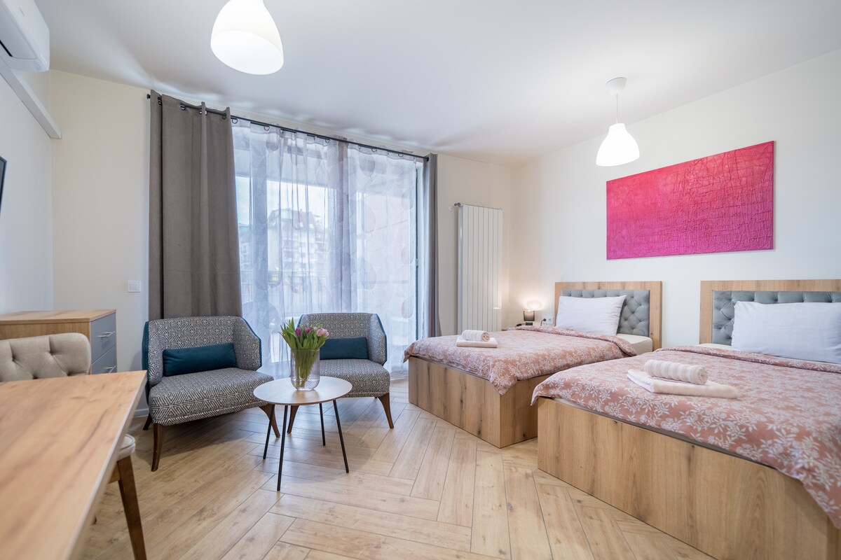Our charming and sunny apartment will be your home while you are visiting Sofia. Perfectly located and fully equipped with all necessary amenities for a comfortable stay, our bright, comfy, and quiet place is perfect for couples, single travelers as well as business travelers. Situated in the heart of the city, numerous pubs, chic cafes, and lovely restaurants are a few steps away. Metro station and bus stations are 2 minutes away, a location that is nearly impossible to beat.