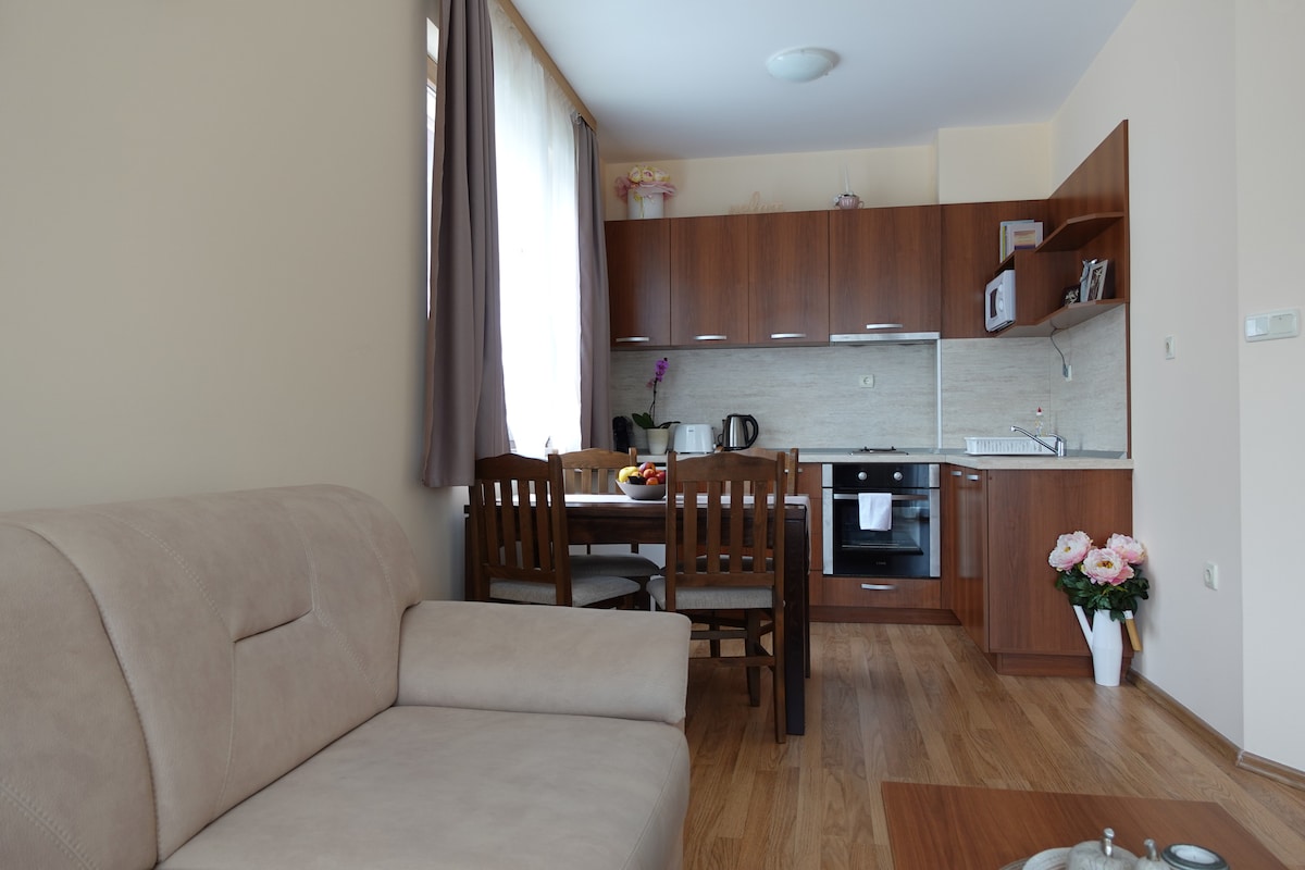 Enjoy a stylish experience at our brand new apartment. Welcome to our beautiful high level apartment in a peaceful neighbourhood near the Mountains! It is the perfect place for families or friends looking to enjoy all that Sapareva Banja area has to offer: hiking, hot thermal water, spa procedures, magnificent views, walks in Rila Mountain. (Rila lakes, Waterfalls, Panichishte & lots more. We also provide to our guest a (10%) discount in Rila Rock Spa with 3 swimming pools, just 5min driving.