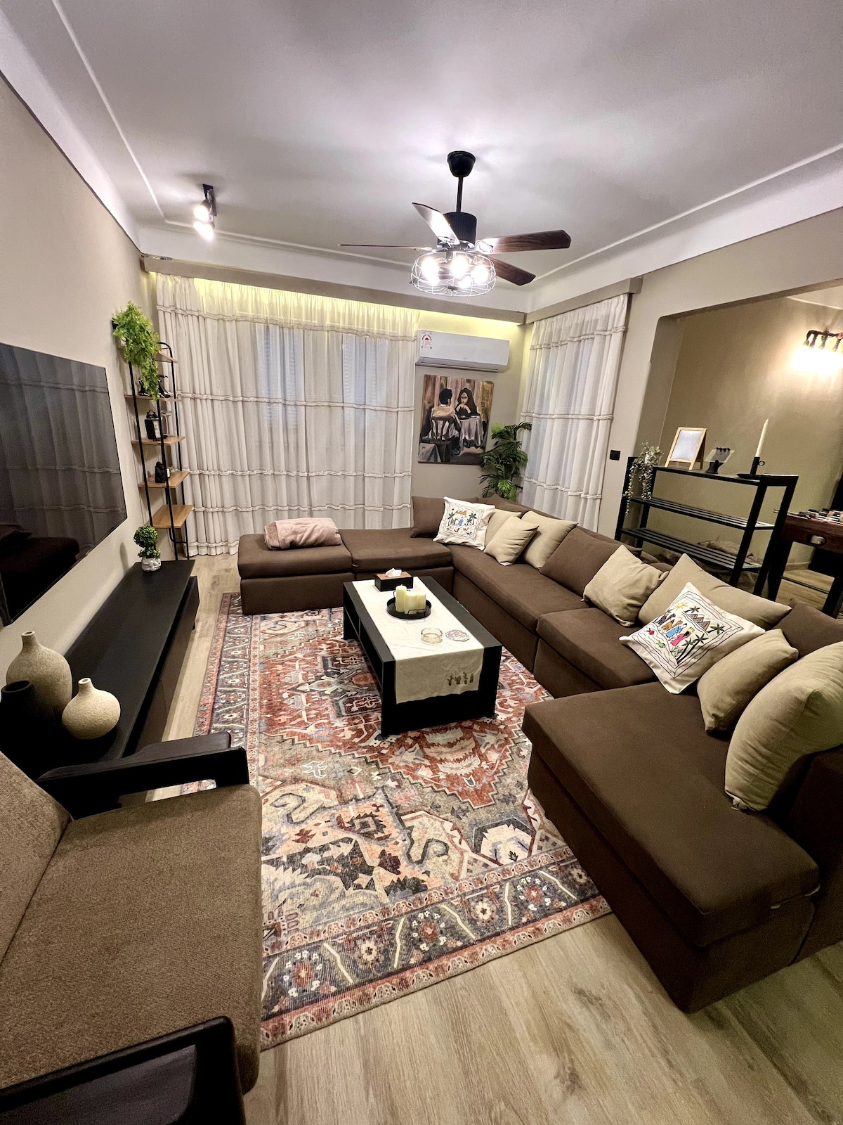 Stay 10 Nights & Enjoy a Free Felucca Nile Ride! Uptown Cairo city center, perfect for business or leisure. Our newly refurbished property boasts a bright, cozy layout with large windows and stunning golf & city views. Inside, a comfy living & dining area, a modern kitchen with high-end appliances, elegant bedrooms with en-suite bathrooms, and a versatile study/office. Just steps away, get free access to a gym, swimming pool, jacuzzi, lounge, and children's playground.