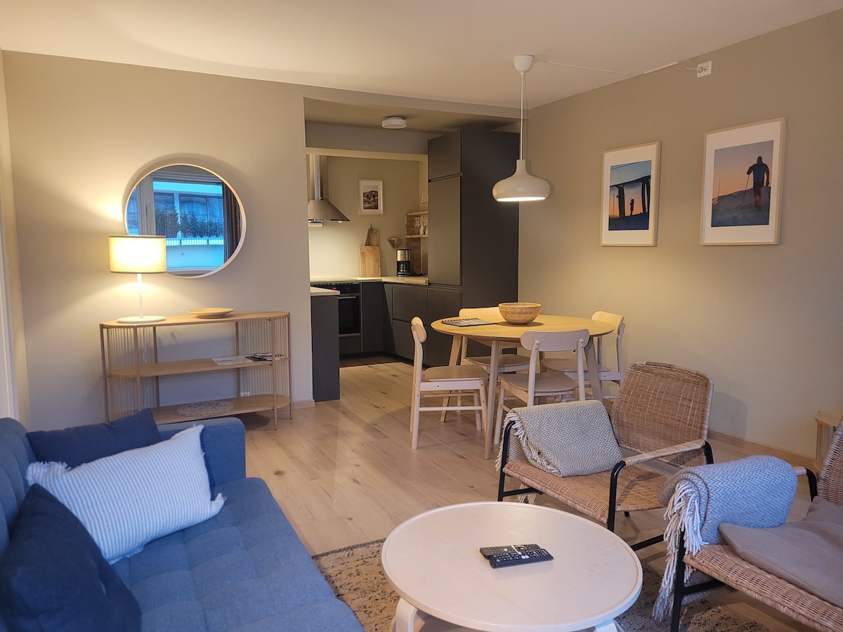 Sørvestvendt 70 m2 leilighet fra 2023 I Geilo sentrum med tog/buss, butikker, ski alpint, langrenn, sykkelløyper, golfbane, innsjø ++ innen få minutter Koblet til hotell med restaurant, bar ++ Tilgang til svømmebasseng, boblebad, badstue, trimrom, lekesal Tilgjengelig hele året, flott for aktiviteter 3 soverom (2 doble, 1 køyeseng) Terrasse med grønn utsikt Sengetøy og håndklær inkludert Gratis garasjeparkering Elbil-lading (kostnad) Gulvvarme i alle rom Wi-fi Stor TV med streaming Lydanlegg