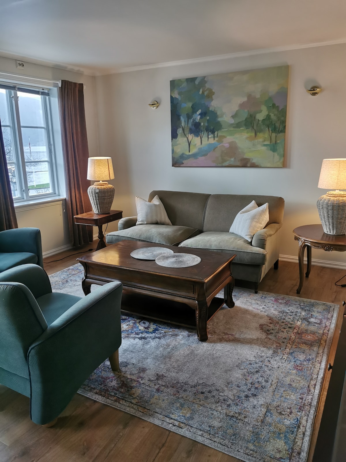 Nyt en stilfull opplevelse på et sted med sentral beliggenhet. Velkommen til Lerum Brygge. Her får du bo i ei topp moderne leilegheit der det ikke er spart på noe luksus. Her kan du kan sitte å nyte livet på sjøkanten med panorama over Sognefjorden i sentrum av Sogndal direkte ved sjøen. Leilegheita inneheld stove og kjøkken i åpen løysing, 2 soverom,bad, vaskerom og terrasse med eigen parkeringsplass i kjelleren. Her kan man bo 1-4 personer. Sengeklær og handkle er inkl. Fest er ikkje tillatt.