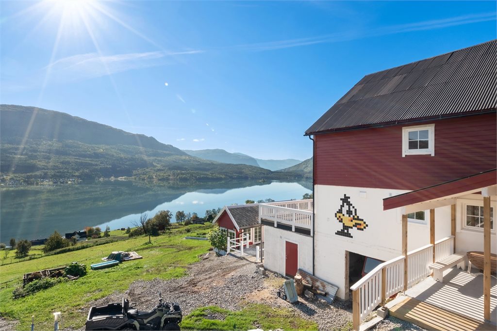 Velkommen til oss på vårt landlige småbruk en halvtime fra Sogndal sentrum. Vi tilbyr en romslig leilighet med stue og åpen kjøkkenløsning, bad, 2 soverom, vinterhage like utenfor leiligheten, og med tilhørende terrasse hvor en kan sitte og nyte livet i ro og mak, og med utsikt utover fjorden. Flotte turområder like bakom husene til rekreasjon. Eget bryggeanlegg m/grillmuligheter til disposisjon. Sauna, på forespørsel. Her kan du lade batteriene på et unikt og rolig overnattingssted.