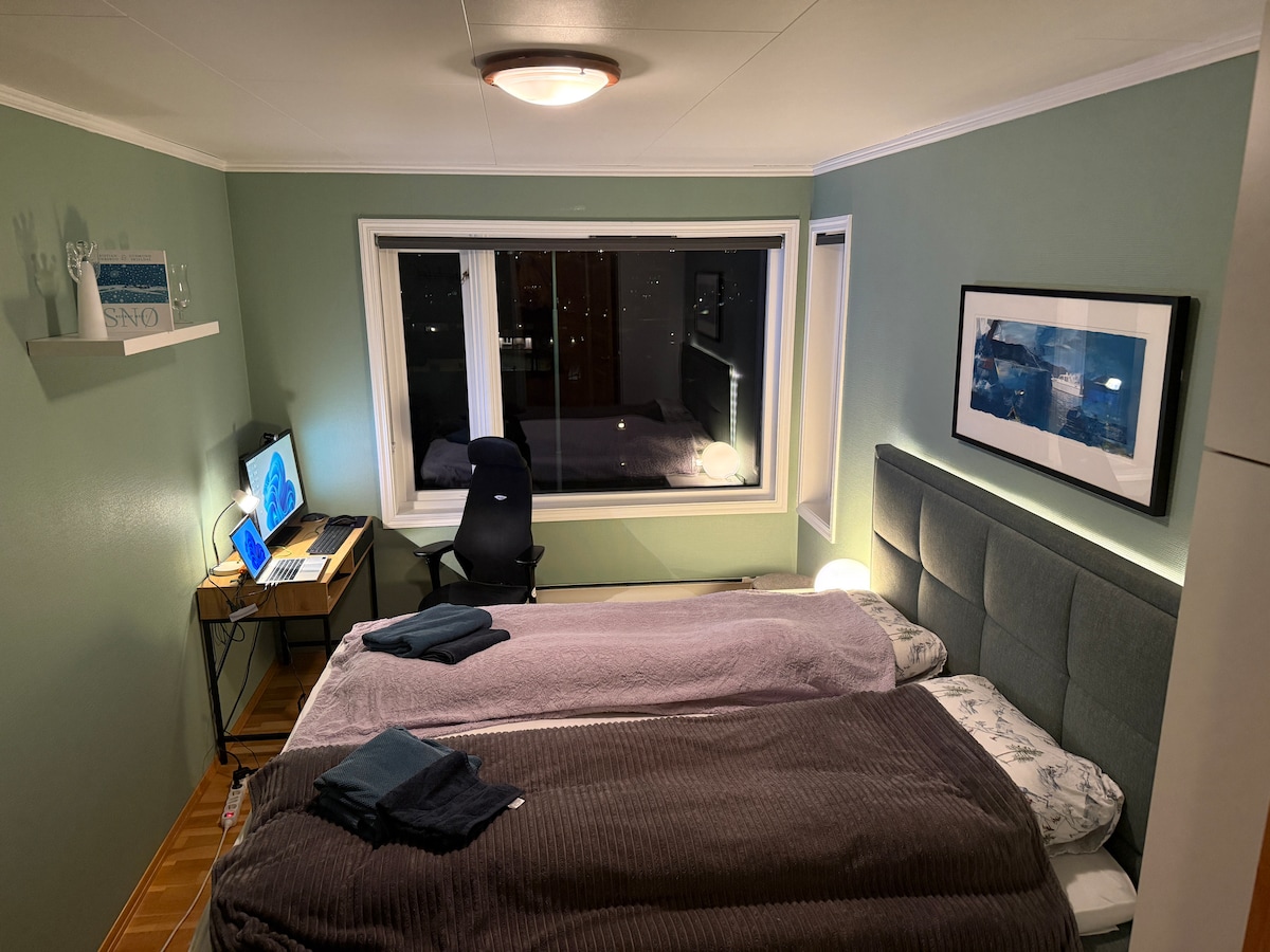 The apartment is around 6 years old, and with all basic furniture and kitchen appliances. There is a parking lot separating the living room window and the fjord. Please contact me for a multiple night discount. You will be met by my hostess upon arrival. PS: In the rare case the cleaning might not be finished by the time you arrive, you are still welcome to check in and leave your bags there. If so, you will be notified beforehand. Русские орки не приветствуются. Слава Україні!