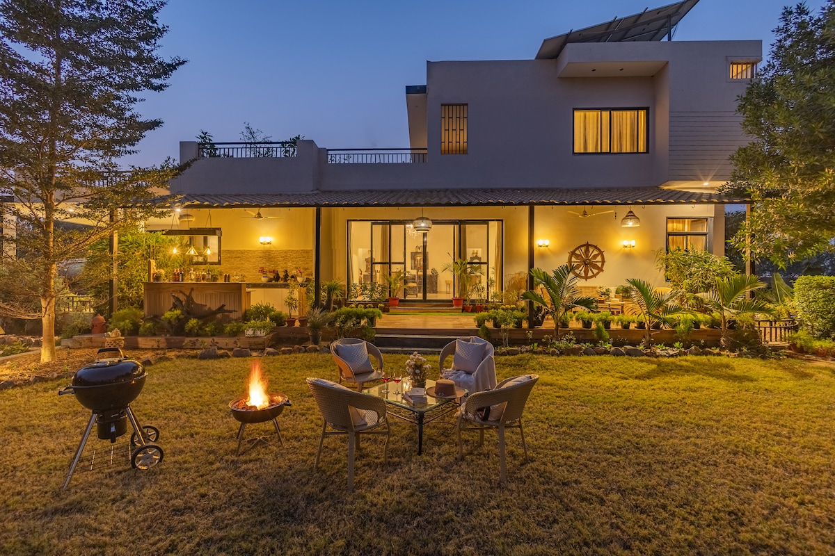 Designed as an ode to my parents (Mom: Krishna and Dad: Rajendra), KrishRaj farms was crafted for relaxation, and reconnecting with nature. 5 acres of beautiful greens, lawns, fruit orchards, fish pond, flora and fauna, and a pvt. outhouse. A private sanctuary to disconnect and unwind, at the foothills of the Aravallis; surrounded by serene village fields on three sides. This tranquil atmosphere and accessibility on the popular Leopard Trail next to the city, makes it a sought-after destination.