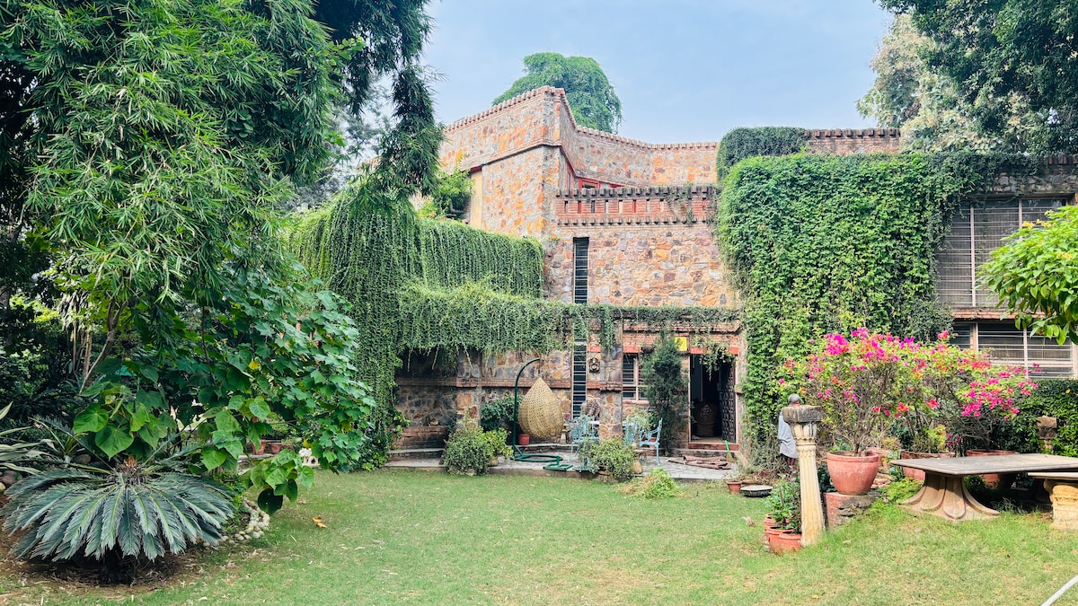 Nestled amidst the bustling Golf Course Road, yet offering a serene view of the Aravali forest range, this loft is a true urban oasis. Step into our spacious home with a living area, cozy dining area, and attached kitchen. Bedrooms offer rustic charm, comfy beds, ample storage, and access to peaceful terraces. A single bathroom is fully equipped. Enjoy views from two large terraces—one of the city and the other of the serene Aravali Forest, with a patio.