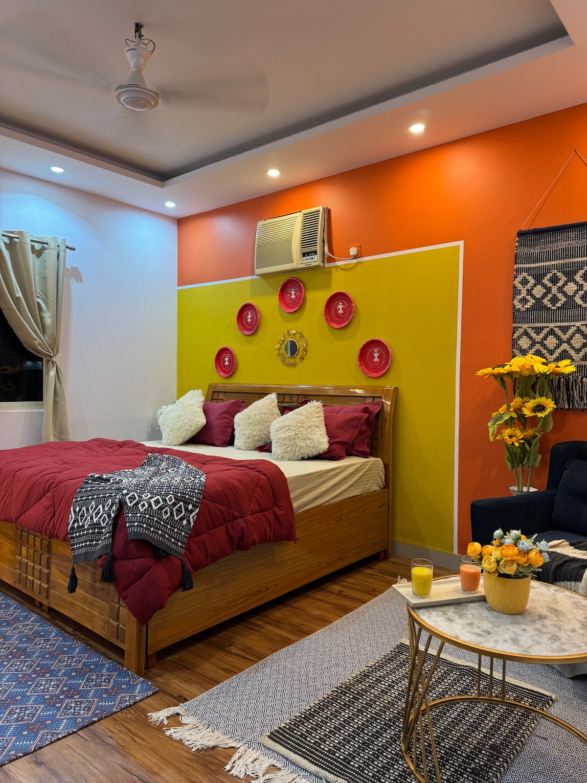 Experience comfort in our private 1BHK with jacuzzi in Gurgaon, private washroom, kitchen, and balcony/terrace featuring a 2-seater swing & patio covered in greenery to uplift your mood. NO VISITORS ALLOWED. we're dedicated host always available to help. Our independent 1BHK on the 2nd floor (note: no lift) offers a cozy retreat!