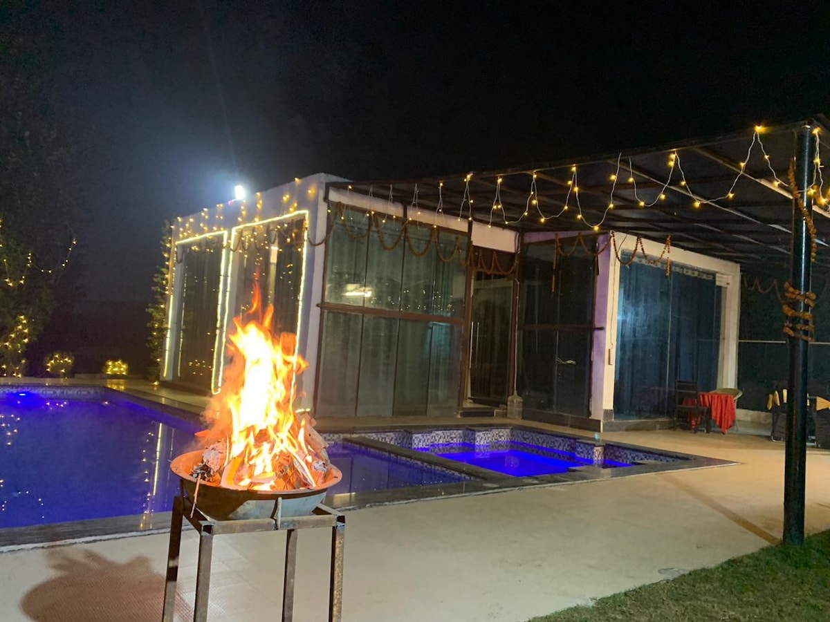 Unwind with family or friends in this plush getaway 1.5 hours from Delhi . Enjoy complimentary tea and coffee . Make use of the fun and engaging play area for kids. Guests can disconnect and enjoy the breathtaking views of the greens and the water body adjoining the villa. The kitchen has all amenities; Kettle, Induction Cooker and Fridge. Two Queen Size beds, One Sofa Cum Bed and One Mattress makes it a comfortable stay for 6 people.