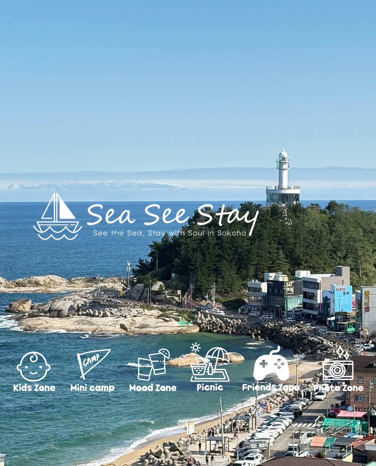 1ๅ้ๅฐ่พพSokcho Lighthouseๆตทๆฐดๆตดๅบใ5ๅ้ๅฐ่พพ์๋๋ Pocha ่กใ็ฉๆๆๅผ็ๆตทๆฏ้คๅ ๏ผ่ฟไฝๅฏไบซๅไนๆไผๆ ๏ผ