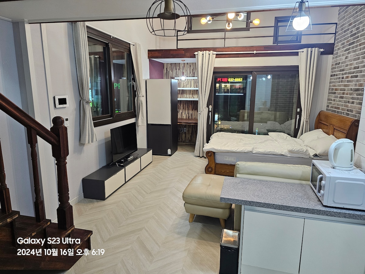 🌊 Cheongcho Lake View Residence – 3Room Royal Suite 🏖️ Exclusive suite with rare views of the East Sea and Cheongcho Lake Perfect for families. 🛏️ All bedding is replaced with fresh sheets after every stay, ensuring a clean, hygienic space 💙 🍳 Light cooking allowed. For strong-smelling food, use the 1F Cooking Studio (₩3,000 per person), equipped with tableware. 💦 Guests enjoy free use of the pool (Nov–Apr closed) and hot spring sauna (Airbnb only). Relax and enjoy the views 🌅