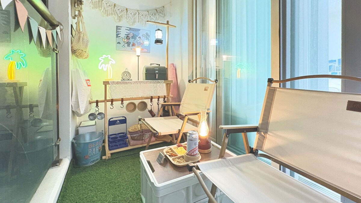 [悠闲退房]ㅣ海景卧室ㅣ距离海滩1分钟路程ㅣ中央市场ㅣ速草ㅣ1楼便利店ㅣ免费停车