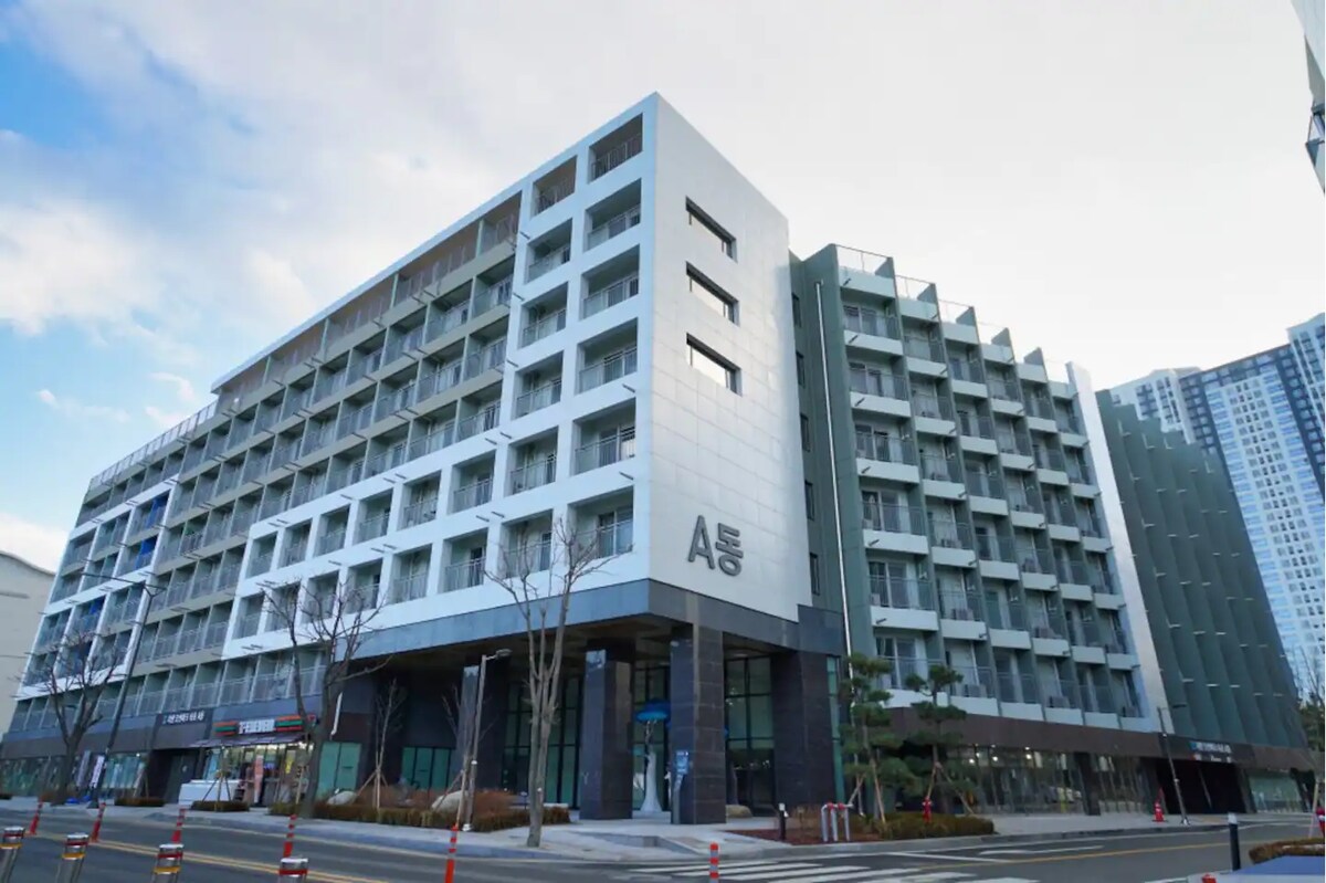 [悠闲退房]ㅣ海景卧室ㅣ距离海滩1分钟路程ㅣ中央市场ㅣ速草ㅣ1楼便利店ㅣ免费停车
