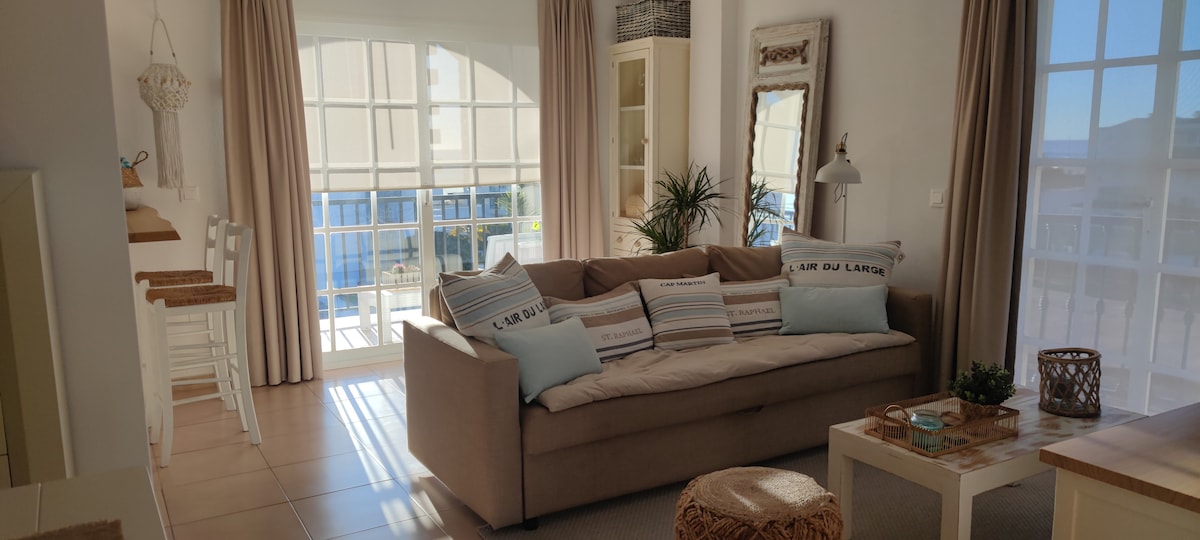 Escape to the coast in this lovingly decorated apartment where you will feel yourselves at home. The space features an open living area, an eclectic mix of furnishings and decor, and access to shared building amenities including a garden and an outdoor pool (not open all year, recommended to ask if the pool is available during your reservation). Stay here if you dream of the beach, nice walks in the seafront walk, good local restaurants and many activities while you are in a cosy apartment.