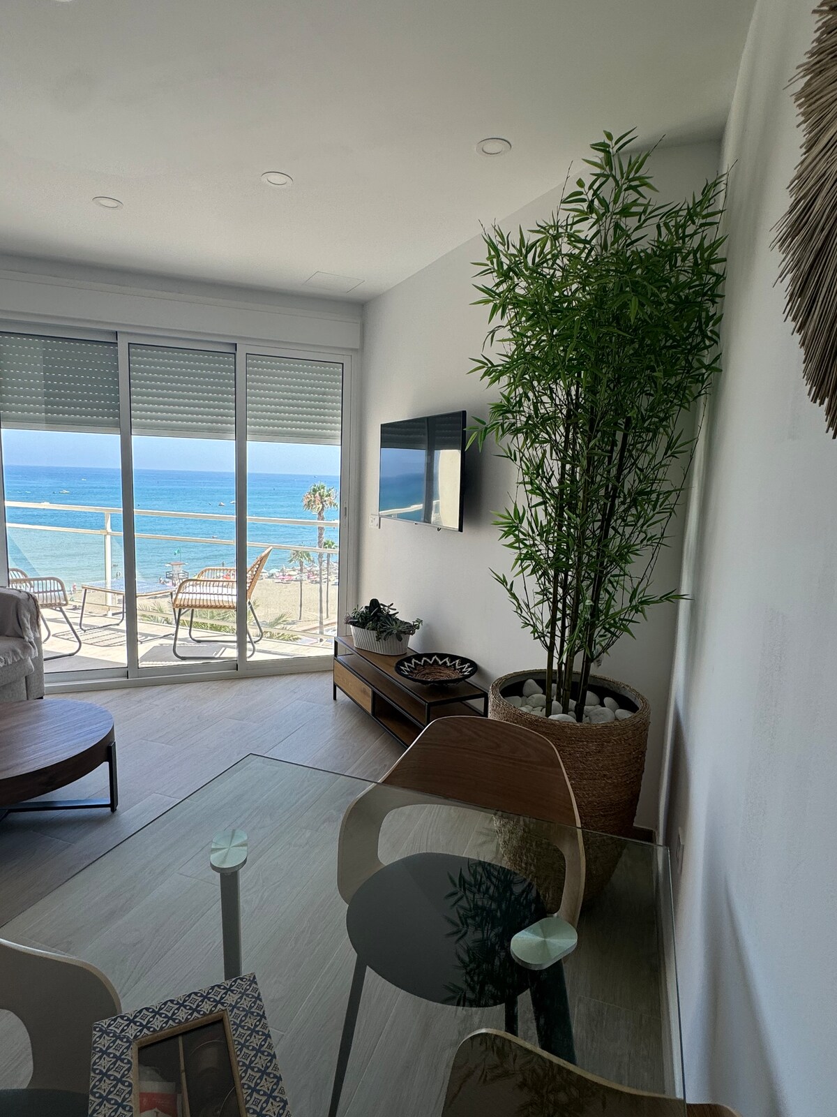 Precioso apartamento a pie de playa, recién reformado, con gran terraza vistas al mar. Cuenta con espacio abierto, cocina, salon comedor, gran habitación independiente, con salida a la terraza, y amplio baño. A si mismo dispone de Wifi y aire acondicionado. Alberga un espacio ideal para la desconexión. Completamente equipado, y ubicado en un entorno idílico, tanto para el relax, cómo para el ocio. El apartamento y el entorno, le harán disfrutar de una estancia inolvidable.
