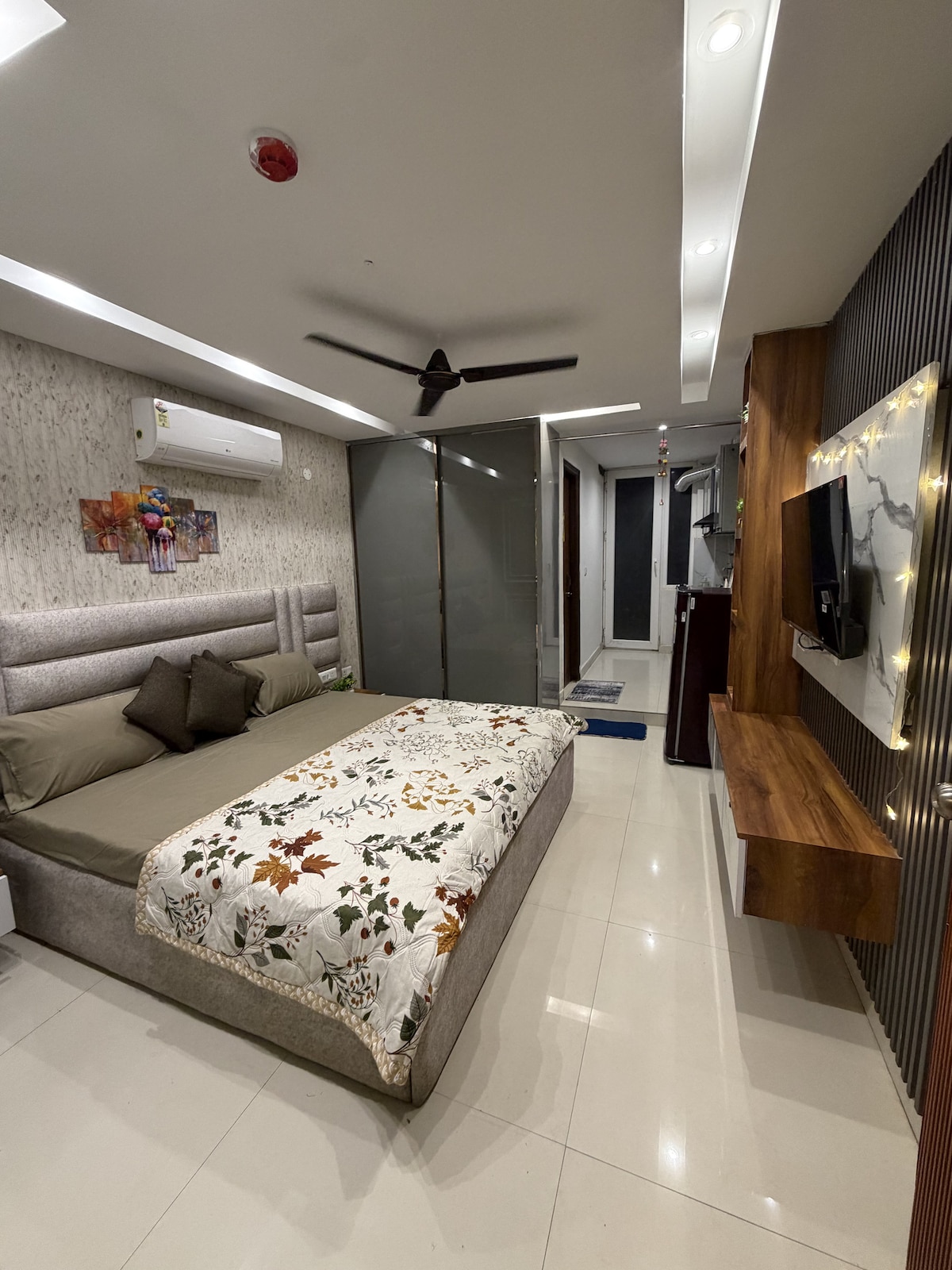 Welcome to your home away from home ! Whether you’re visiting for work or leisure, this bright and stylish space is perfect for couples or solo travellers , families . 🛏 What You’ll Get: • 1 bedroom with comfortable bed & living room • 1 bathroom with hot water & basic toiletries • Fully equipped kitchen for home-cooked meals • High-speed 🛜 , smart TV ,Refrigerator 🚗 Other Highlights: • Parking / 24x7 Security / Self-check-in / Elevator / Pet-friendly • 24x7 💡 Backup