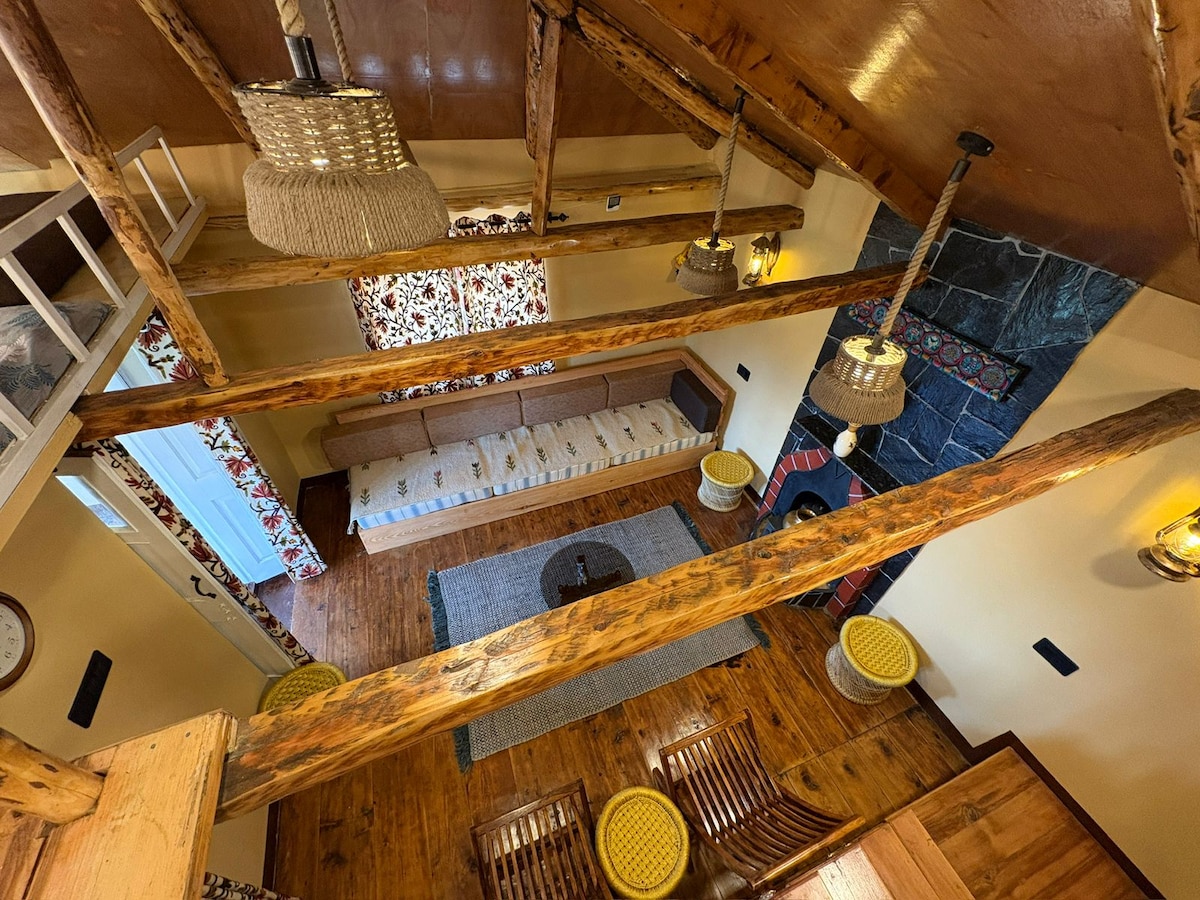Glamoreo, just 1 hour away from Shimla. Stunning walnut wood interior, including all the furniture. Outdoor wooden bathtub, perfect for soaking in the fresh mountain air. The surrounding area is open and spacious. You can walk around, take in the scenic views, and get a feel for rural life. Everything here is organic, from food to dairy products. If you don’t feel like home-cooked meals, there are cafes and restaurants just 3–4 km away, and you can either visit them or have food delivered