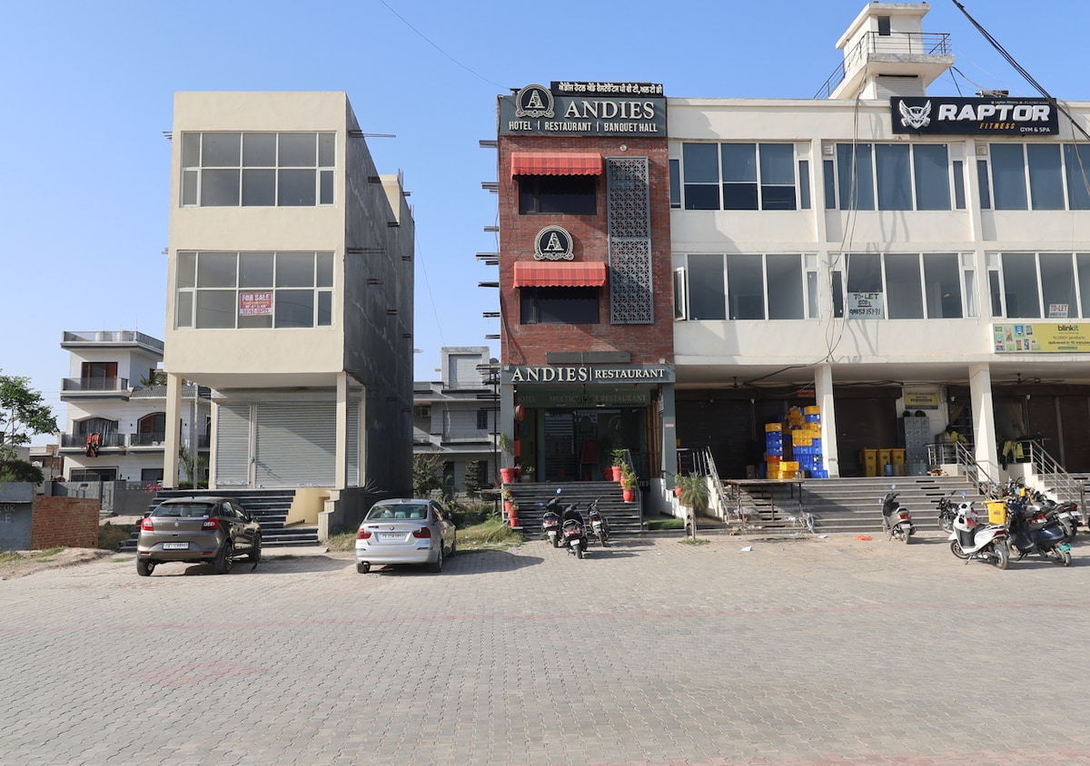 Located in the heart of Mohali. Nearby Locations: •1 min from Fortis Hospital •2 min International Cricket Stadium •5 min ISB Mohali •Only 10 minutes from the Airport Our Property Highlights: •Spacious Rooms – A fully equipped kitchen and a balcony •Presidential Suite – Featuring a separate meeting lounge for business •Fitness Center •Rooftop Restro – Enjoy stunning views of the city •Multi Cuisine resto 24/7 •High Speed Internet with 100 Mbps dedicated LAN in each room