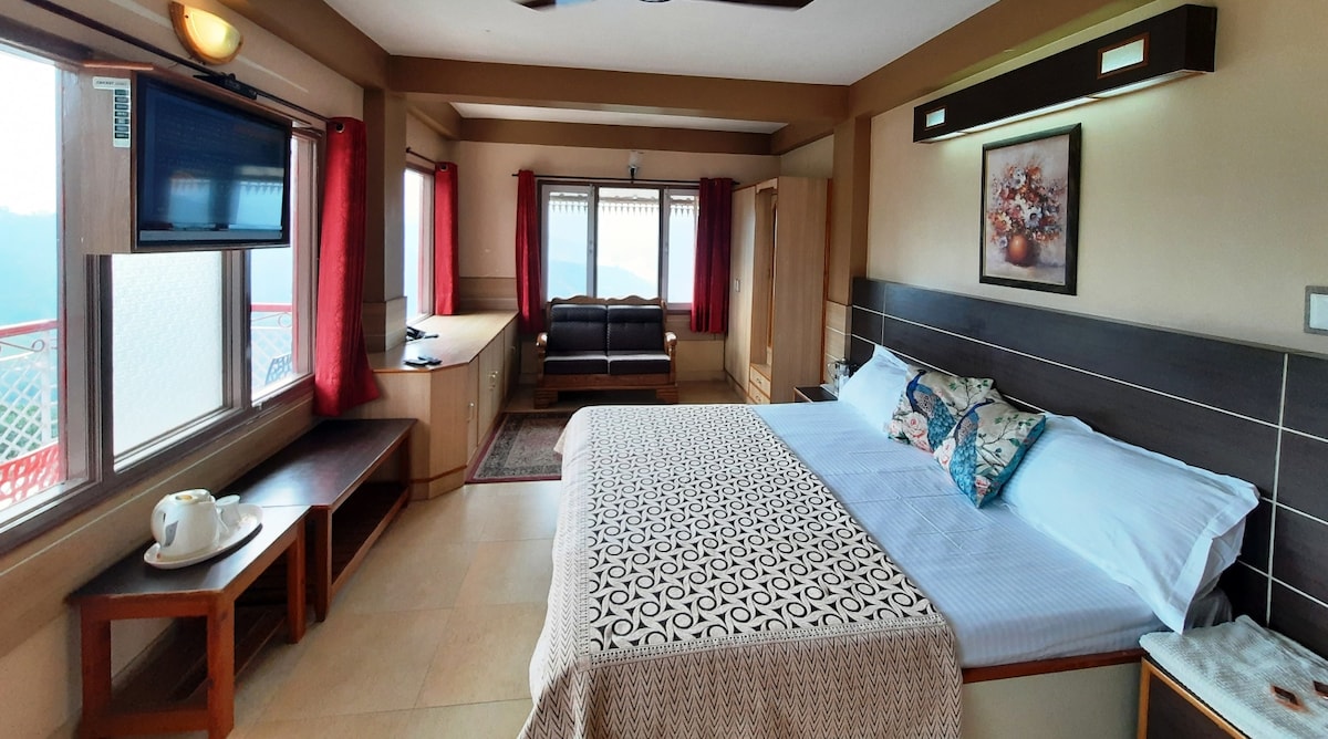 A well furnished apartment consisting of two bedrooms and a drawing dining with attached kitchen and toilet, and of course a spacious balcony with a 210 degree view of the Himalayan Splendor. Open your windows and welcome the clouds into your (URL HIDDEN) so quite that the swallows have nestled there.