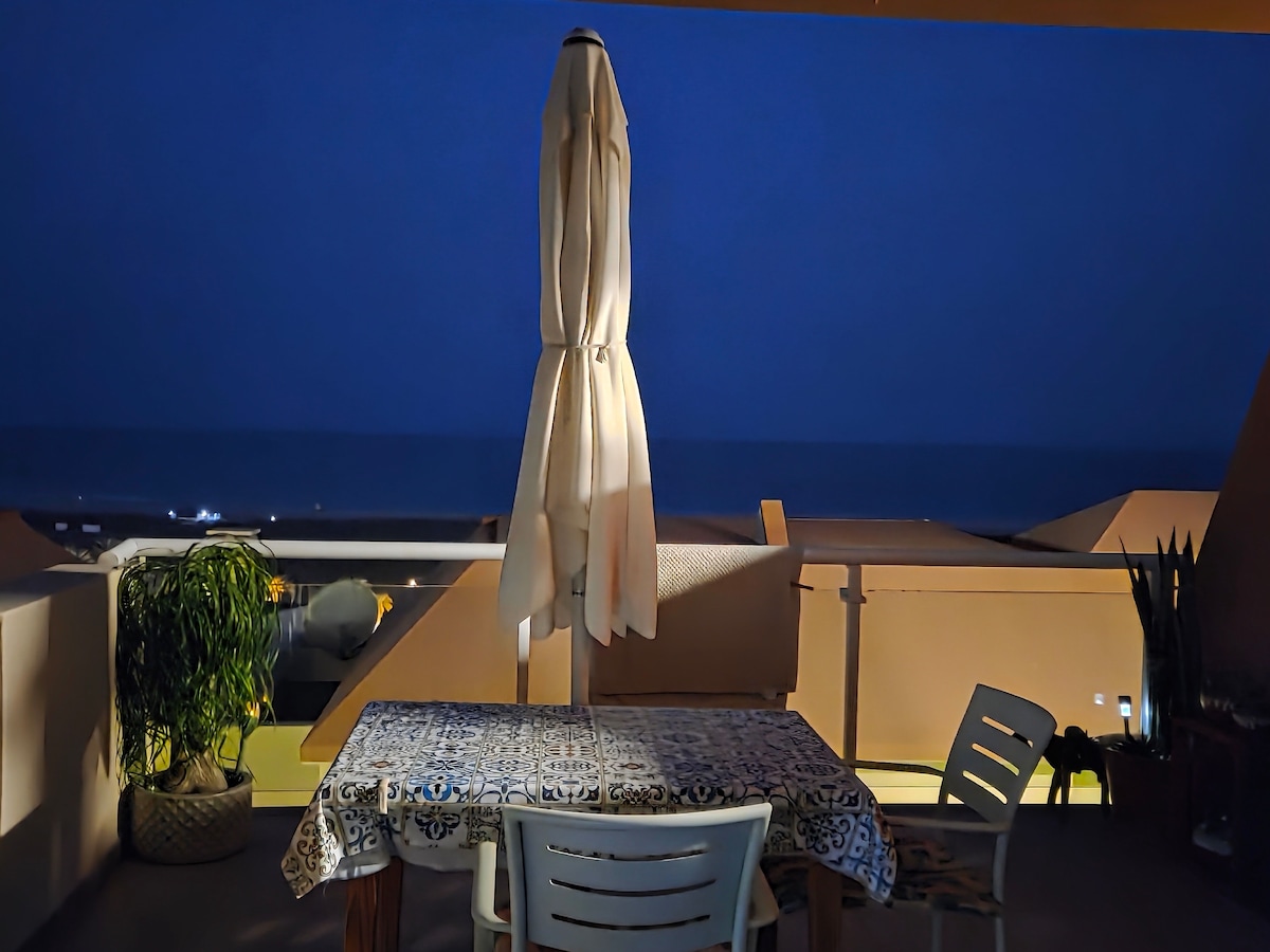 Moderno apartamento con balcón y extraordinarias vistas al mar, muy bien situado, a menos de 3 minutos caminando de la playa. Reformado, con internet gratis, aire acondicionado, tv con canales internacionales, tranquilo, acogedor y luminoso, con una doble altura e idílica buhardilla.