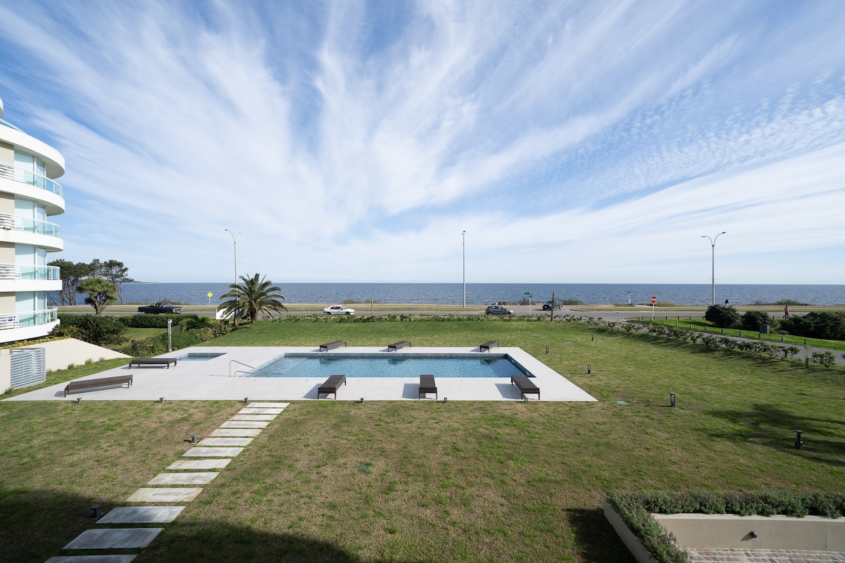 Cómodo apartamento para alojamiento de familia con hijos o parejas, bien decorado, con amplia terraza con parrillero y césped. Hermosa vista al mar. Todos los días tendrás dos muca mas para limpiar el departamento y cuenta con Personal de Mantenimiento . Club House con piscinas y gran solárium con reposeras sobre césped que termina en el mar , jacuzzi, gimnasio, sauna y salas para eventos, guardería para niños en temporada de verano.