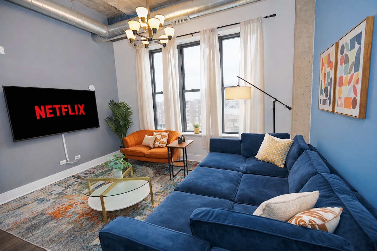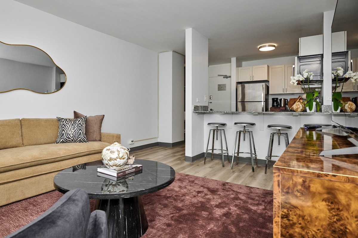 Experience modern city living at LIVN West Loop Chicago, a stylish loft-style apartment studio at 555 W Jackson Blvd in one of the city’s most connected neighborhoods. This newly renovated studio features a full kitchen, in-unit washer and dryer, and clean, modern interiors. Walk to Union Station and Willis Tower. You are minutes from top dining, offices, and transit, ideal for business trips, weekend stays, or longer visits.