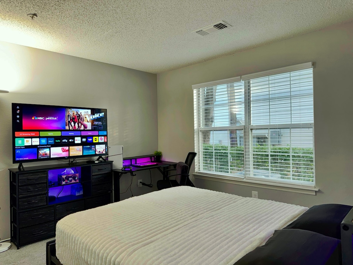 Kick back and relax in this calm, stylish Apartment. This location is only 5 minutes from Parx casino! Parking is free and 5 feet from where you will be staying. This space features a courtyard with a fire pit and a well lit outdoor dinning space. Inside the walls are well insulated, so the space is quiet. And features a gas fireplace for cold winter nights! Internet is fast and free. There is a desk in the living room that is perfect for remote workers. Tesla charger is also available