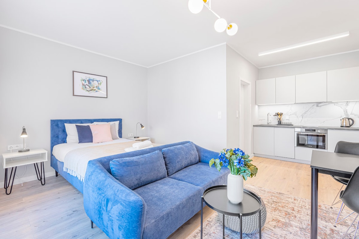 A luxurious loft-style apartment located in an over a hundred-year-old tenement house. Due to the extremely high ceilings and windows you can feel space and light. While designing the interior of our cosy accommodation, we tried to combine comfort with luxury. The bedroom has been separated from the living area, so up to 4 people can comfortably spend time here. The central location of this appartment is an excellent starting point for any excursions.