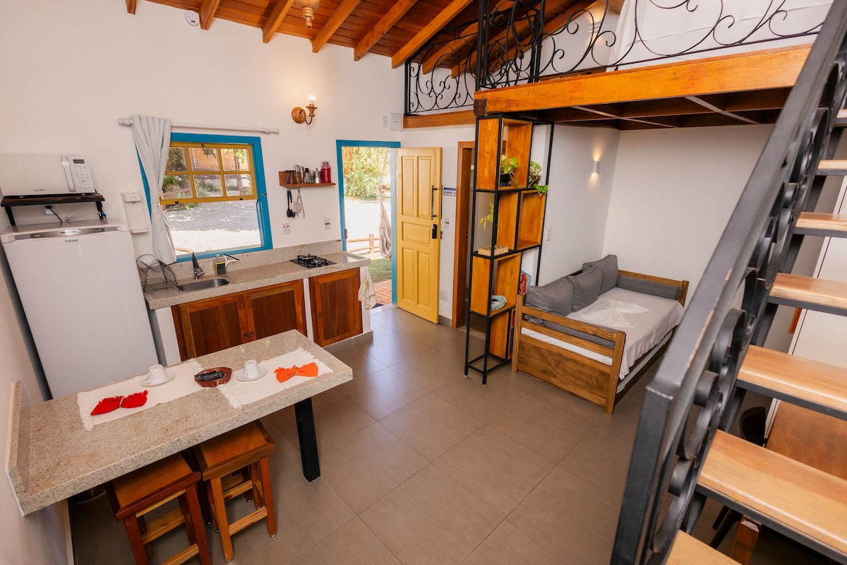Studio privativo com: cozinha equipada ar condicionado wi-fi + smart tv área de serviço Estamos localizados aos pés da Montanha Sagrada Roupas de cama e toalhas de banho são fornecidas Durante a sua estadia somente você terá acesso ao studio Algumas distâncias: 280m Batalhão da Polícia Militar 1,0km Feira Vila Verde Caminho do Artesanato 1,6km Parque das Águas 2,6km Trem Maria Fumaça Para essa acomodação não é oferecida vaga de garagem, mas é possível estacionar em frente ao prédio