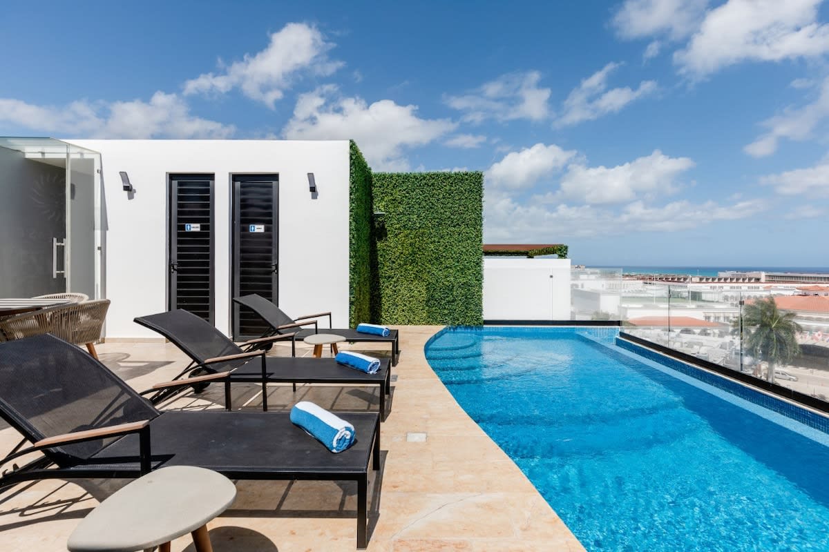 Modern, adults-only apartment in a quiet neighborhood just minutes from downtown. Guests love the peaceful setting and return often for the rooftop plunge pool, BBQ area, and daily housekeeping. Cruise the coast on free bikes or explore nearby shops and cafes. ✔ Rooftop Pool ✔ Starlink WiFi ✔ Free Bikes ✔ Full Kitchen ✔ Night Security ➕ 7-Eleven only one block away Bonus: 10% off scuba diving with top-rated Scuba Life Cozumel. Ages 12+ only.