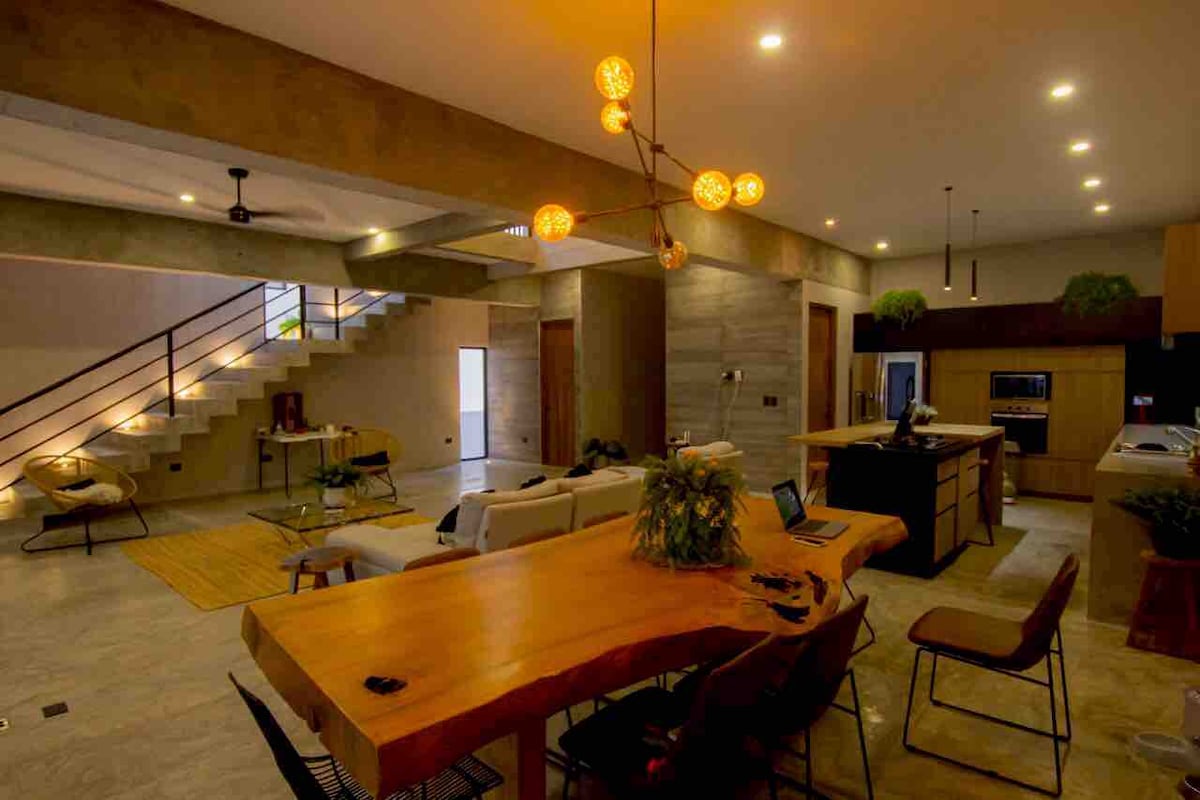 At Casa Okó, enjoy a spacious and comfortable home with your family. Its traditional Maya Chukum architecture, combined with rustic materials, creates unforgettable moments in one of the most exclusive areas of Mayakoba, with 24/7 security. Relax by the beautiful lake (or “cenote”) reserved for residents, surrounded by trails, parks, and lush jungle. Perfect for golfers, just steps from the famous El Camaleón Golf Course, and equipped with high-speed internet for your convenience. 🏝️