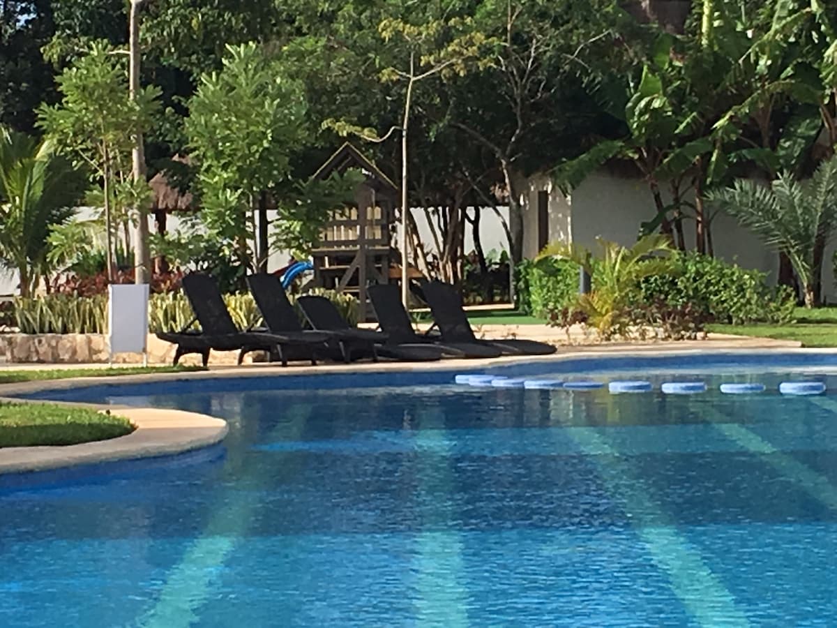 Relax with the whole family at this peaceful place to stay. Is located at 5 minutes from xcaret. Xplore parks. 10 minutes from famous 5th Avenue. And just 30 minutes from tulum. The place is very comfortable and has a sport club with gym, semi olimpic pool and padel court and also football courts. Great place to relax or great for use as a base house. Because is located at the center of the riviera maya.