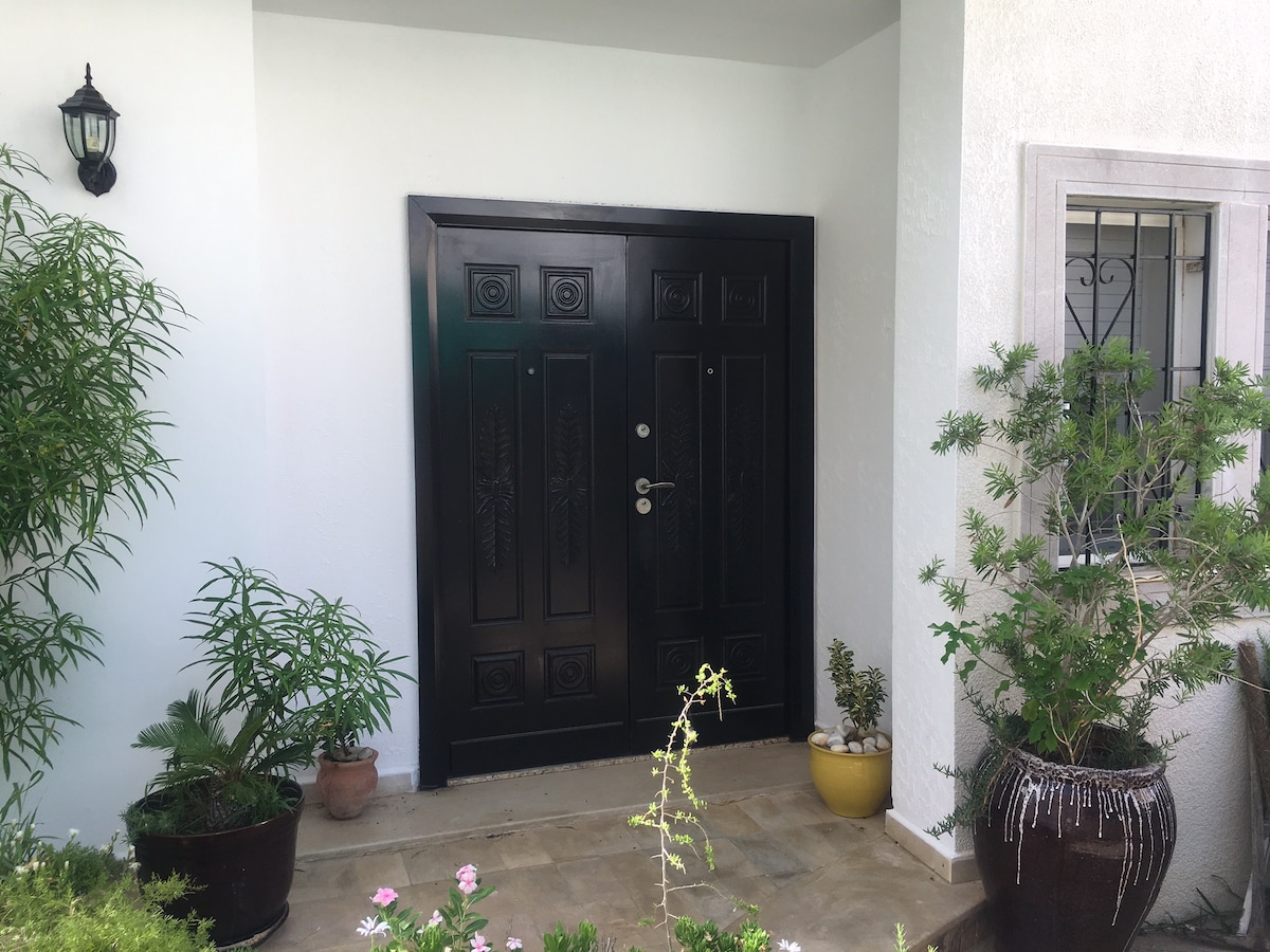 Spacious ground-floor villa in Plage Ejjehmi, Soliman part of a two villas building, a 5-minute walk to the beach. Securely located with 3 double bedrooms, 2 bathrooms, and a large kitchen with an 8-seater dining table. Enjoy a vast garden with comfortable furniture and a BBQ. Supermarkets, shops, cafes, and banks are a 5-min drive. Nightlife and restaurants in Hammamet or Tunis, both 30 minutes away, along with the historic Carthage and iconic Port of Sidi Bou Said.