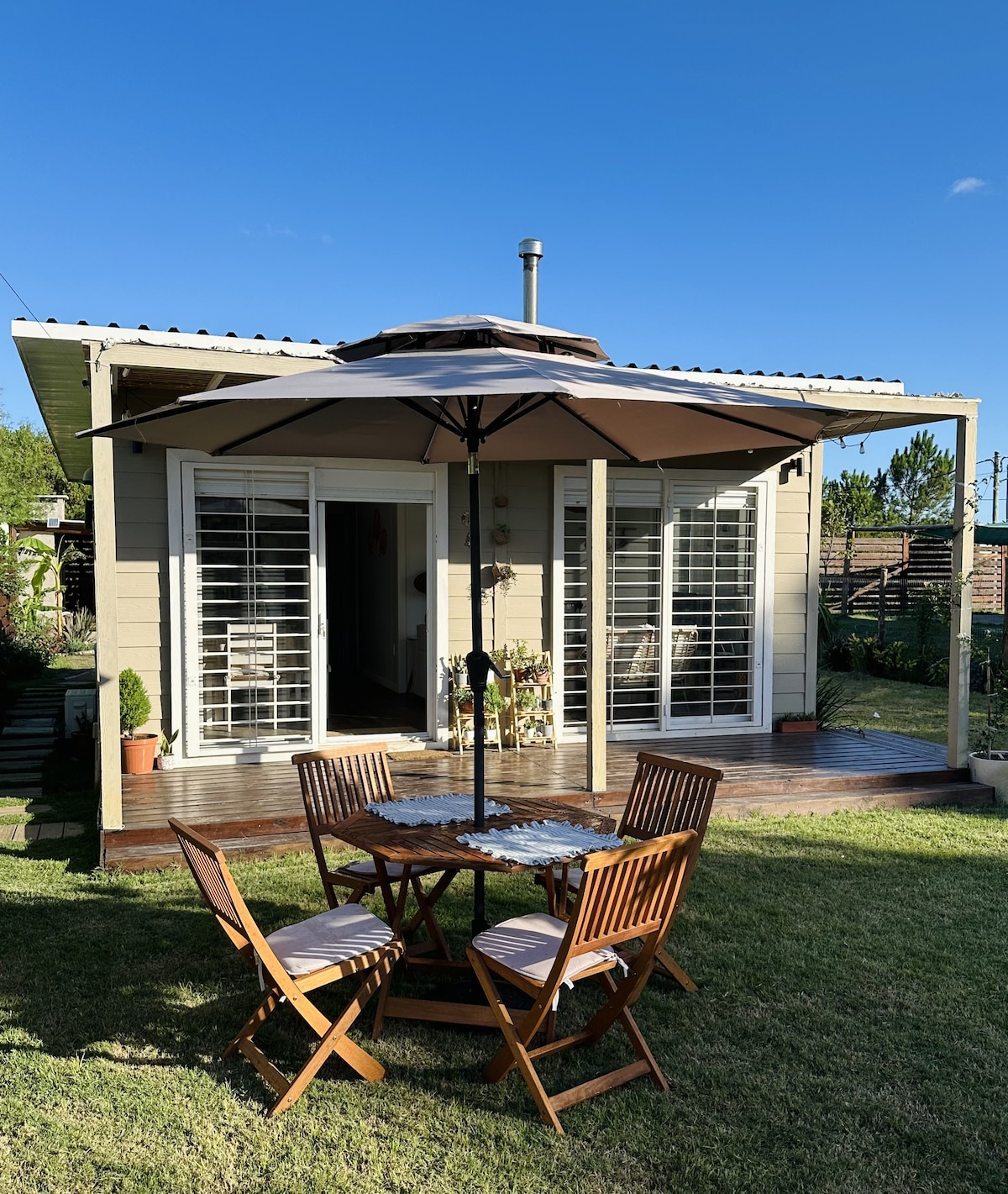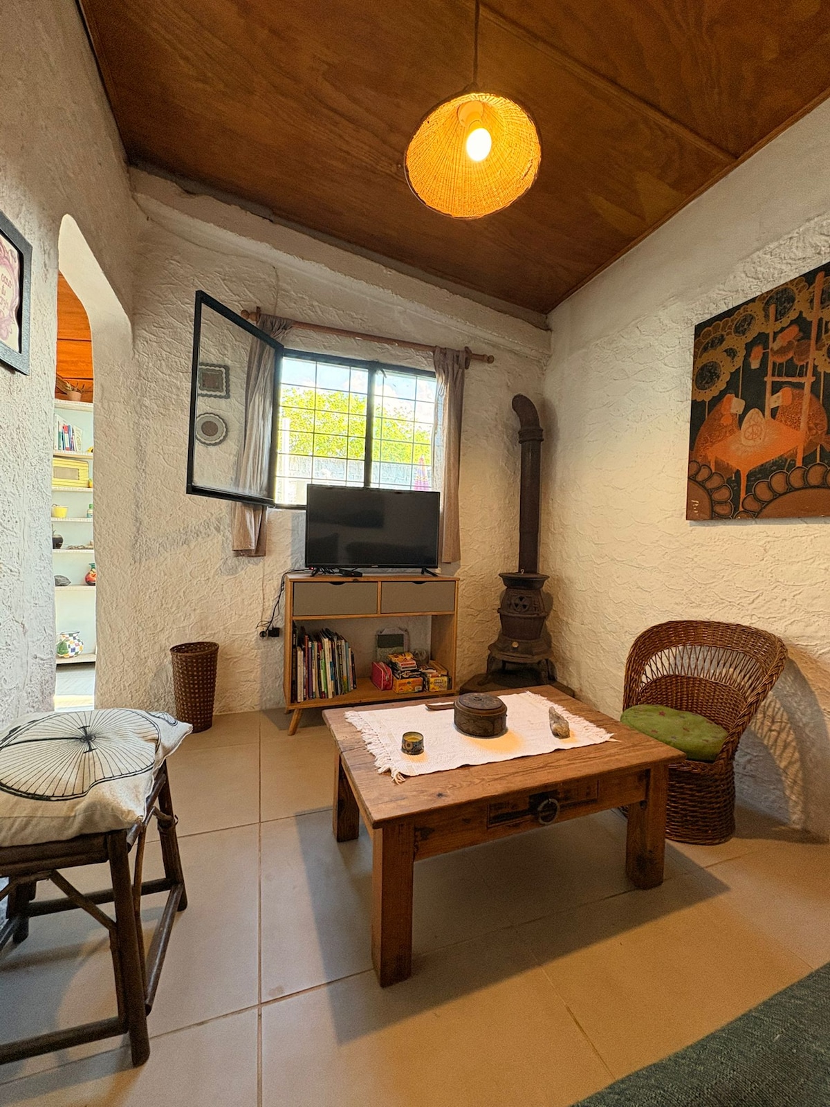 Hermosa y acogedora casa de balneario, a dos cuadras de la playa. El espacio cuenta con un amplio parque, con diversidad de plantas silvestres, sitios de sombra, deck/comedor y un fogón. Ideal para aprovechar los días y las noches de tranquilidad y conexión con un entorno muy especial, cercano a las sierras de las animas. En el interior, la casa tiene capacidad para 4 personas máximo. Cuenta con un dormitorio privado con cama doble, y dos camas individuales en el espacio común.