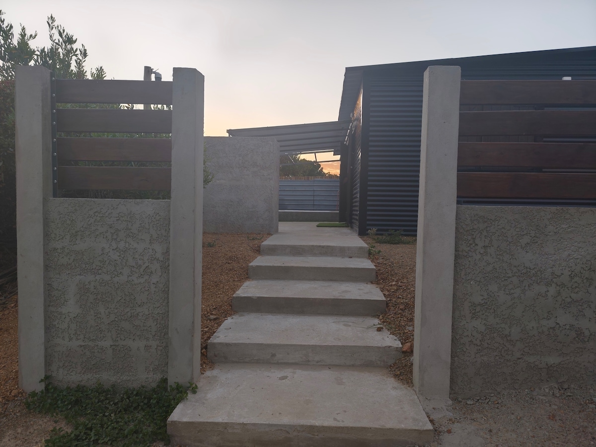Preciosa casa nueva con dormitorio con cama matrimonial, cocina integrada al comedor y alarma. Ambas habitaciones con aire acondicionado y tv en el cuarto. Cocina y anafe eléctricos. Baño completo con ducha higiénica. Terreno de 1200 mts con diferentes espacios: lugar para colgar dos hamacas, espacio para hacer un fogón, troncos para estar alrededor o simplemente sentarse en sillas debajo de los árboles. Cuenta con parrillero simple móvil. Parada de ómnibus a 2 cuadras. No se aceptan mascotas.