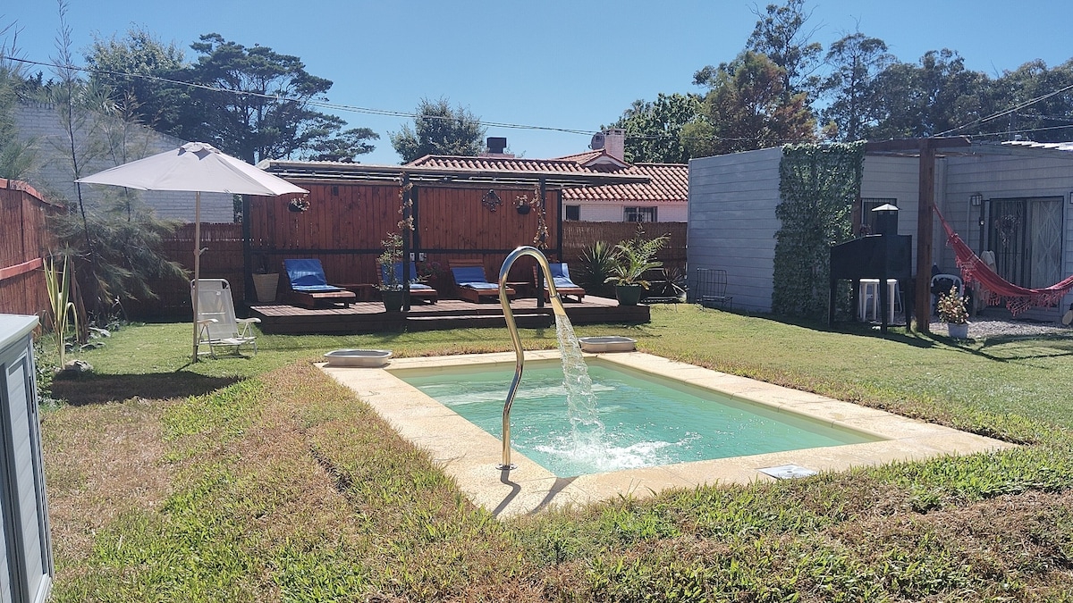 Apartamento de acceso independiente , luminoso, tranquilo y con amplia galería. No se aceptan NIÑOS . NO SE ACEPTAN MASCOTAS. Si el huésped recibe visitas debe AVISAR antes! de RESERVAR (podría costar$) Jardín con parrillero y cómodo living bajo los árboles. Tina exterior de madera . La playa a 4 cuadras de distancia. Si desea desayuno, se abona aparte. El precio incluye ropa de cama y toallas. El precio de la reserva incluye el uso de la parrilla (no incluye leña), la tina y las bicicletas.