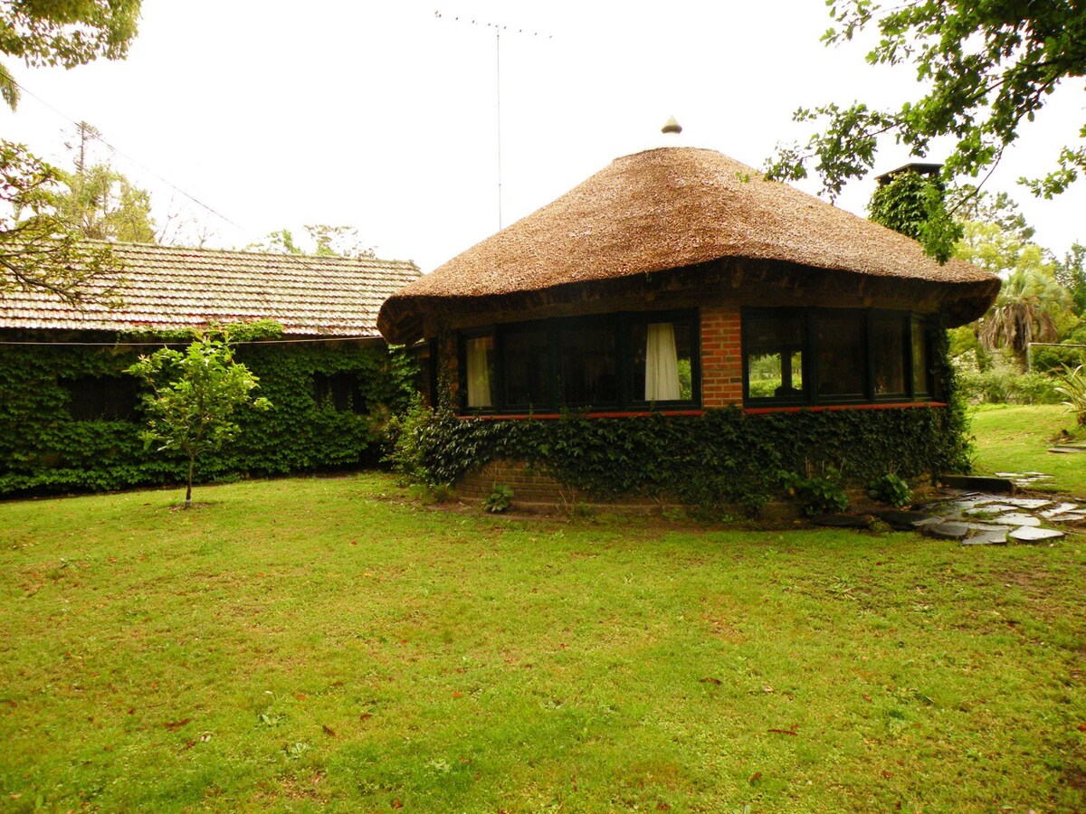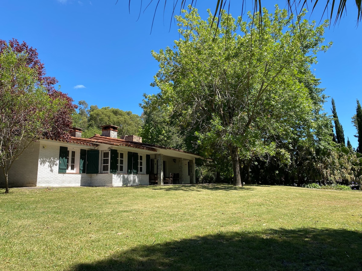 Relax with family at our peaceful paradise on the river. Our home sits on a huge garden right on the Arroyo Solís Grande. Especially tall trees provide ample shade and lots of pine cones for starting the BBQ or fireplace! With direct access to the river and a private dock, you can enjoy river activities, or walk 500m to the beach. Enjoy the sunset from the enclosed or outside terraces while you enjoy your Uruguayan BBQ! A modern kitchen and multiple living rooms make it perfect inside or out.