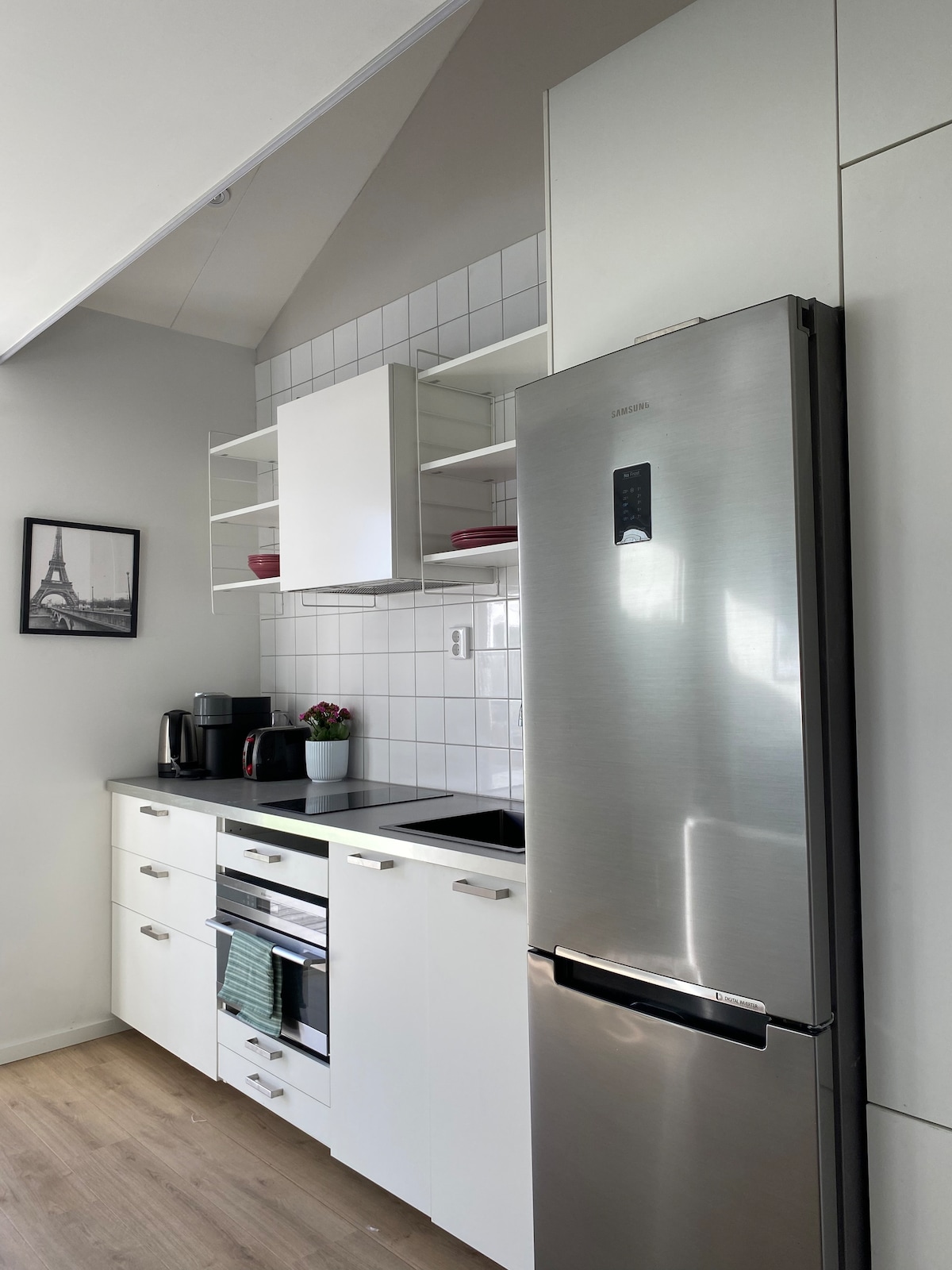 Welcome to our cosy Loft that we just built! The loft is built above our garage beside our house and it accomodates you for a short stay of 2-3 people/small family or a longer stay of 1-2 people. Cot bed and child chair is available. The loft is located in a calm neighbourhood by the forest. Communications are great with commuter train and buses close by. Going by car to Stockholm takes about 15minutes. Car charging up to 50kWh/day is included. Let us know if you have any questions!