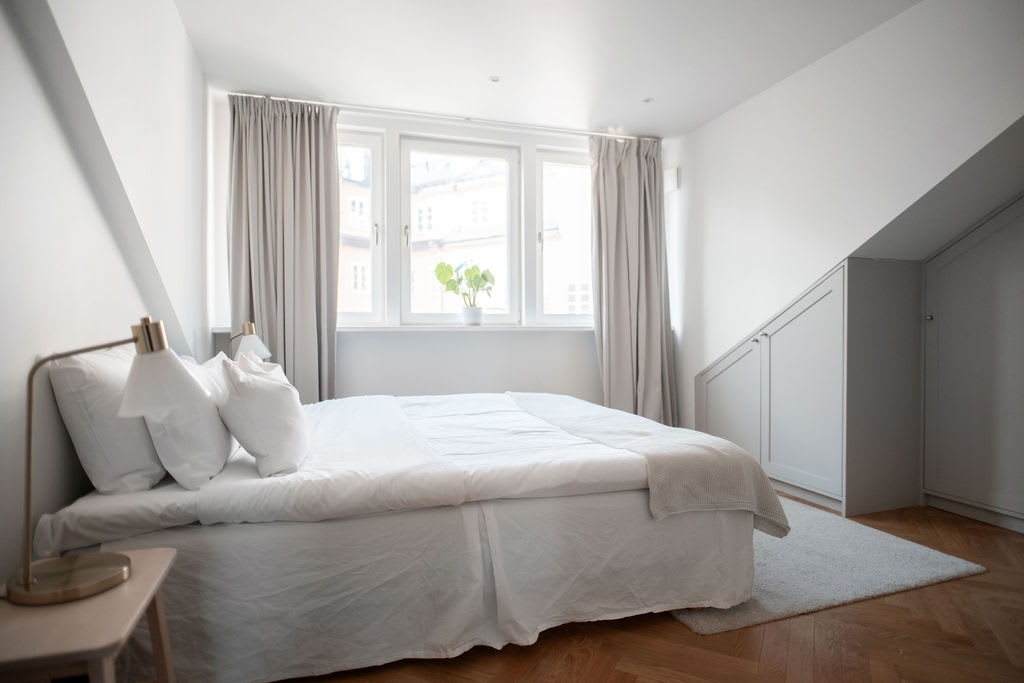 Ny lyxig vindslägenhet i Centrala Stockholm Välkommen till vår fina vindslägenhet belägen i hjärtat av Stockholm. Här får du bo i en exklusiv suite med all tänkbar lyx. Badrum: -Egen ångbastu -Inkaklat badkar -Dusch och blandare Dornbracht -Tvättmaskin och torktumlare från MIELE -Kalksten från Norrvange Bricmate Kök/Vardagsrum: -Platsbyggt kök i äkta ek -Travertino från Italien -Vitvaror Gaggenau -Golv i äkta ek Chevron Bekvämligheter i hela lägenheten: -Luftkonditionering AC -Golvvärme