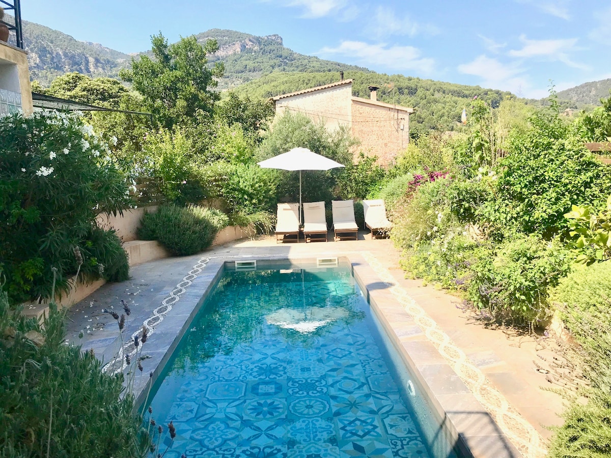 Surrounded by a garden, the house faces a large swimming pool in a quiet environment with views on the Sierra de Tramuntana. The city center of Soller is at a walking distance. The house enjoys a vast space that includes a modern kitchen entirely equipped, a dining room with a long table and a comfortable living room with a chimney. Up to 8 people can comfortably stays in the house which has 4 bedrooms, 3 full bathrooms and a toilet. It is also very well equipped (A/C, heating,….).