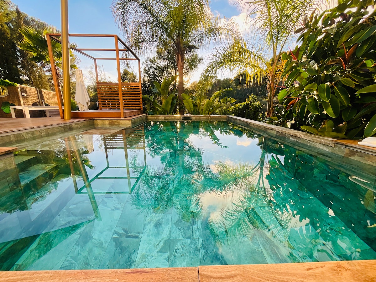 Nichée dans le parc résidentiel du Mt des Oiseaux, la Villa PACHAMA bénéfice d’un emplacement privilégé, au calme entre mer et pinède. Cette Villa de 185m2 se situe à 7mn de la plage de l’Almanarre (20mn à pied). Une piscine d’inspiration balinaise avec transats et parasols vous invitent à chiller. Une vaste terrasse entourée d’un jardin paysager, un terrain de pétanque complètent le tout La Villa PACHAMA peut accueillir jusqu’à 8 voyageurs pour des vacances d’exception en famille ou entre amis