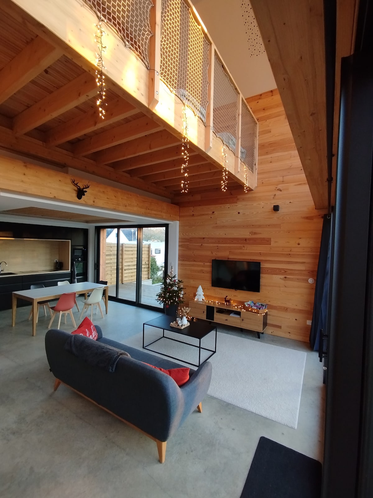 Détendez-vous dans cette maison bois unique et tranquille en pleine nature face à un étang. 2 hectares de terrain, dont une partie boisée, et un étang seront juste pour vous. Du calme, un paysage magnifique, et une chambre avec vue . Endormez vous et réveillez vous en contemplant la nature. 90m2 de cocon douillet: Un salon cosy , une cuisine toute équipée, une véranda comprenant une salle à manger, et un deuxième petite salon. Une salle de bain avec une baignoire pour se détendre complètement.