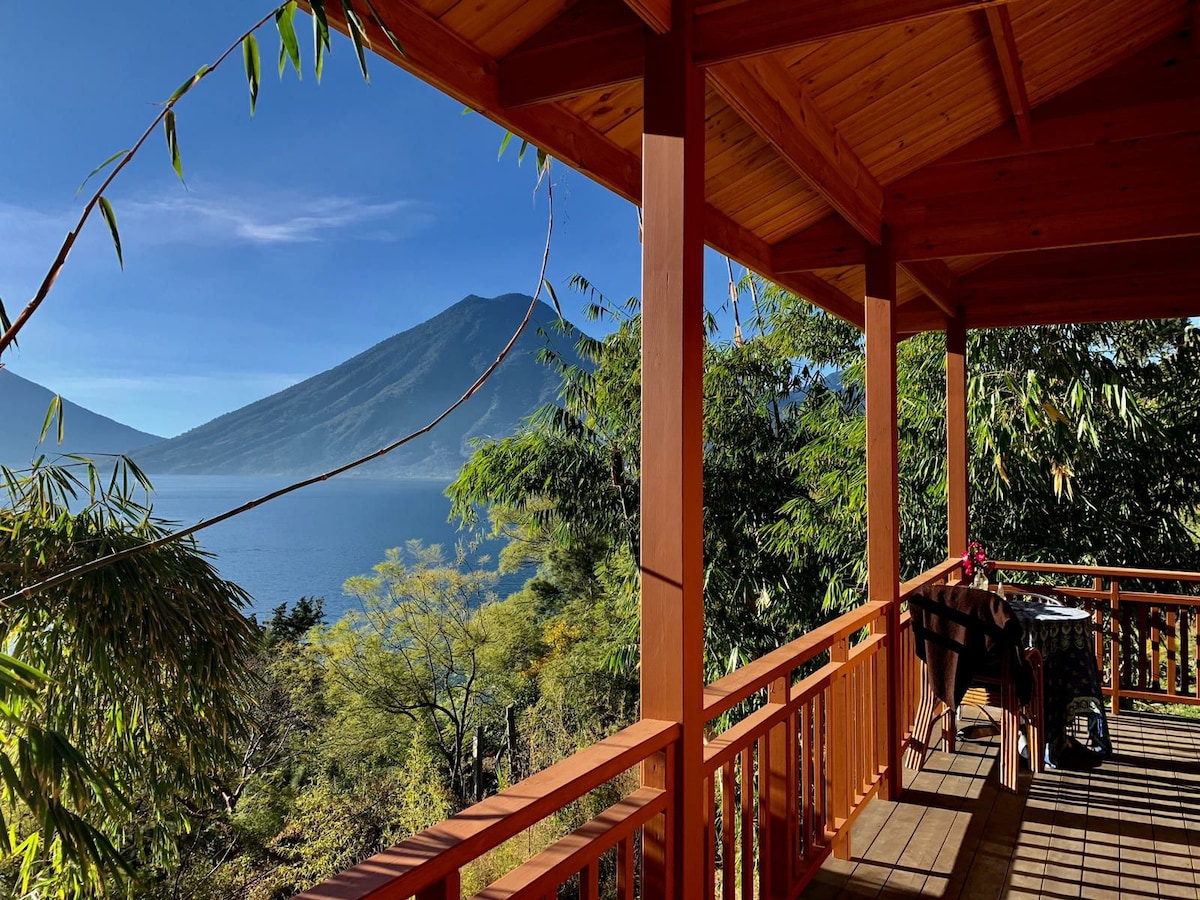 LAKEFRONT VIEW! IG: @Lakeviewontherocks “Lakeview on the Rocks is a spacious waterfront home in San Antonio Palopó with incredible views of the Atitlán and Tolimán volcanoes. Perfect for families and groups, the home offers direct lake access, kayaks, a private deck, and plenty of indoor/outdoor space to relax. Just 20 minutes from Panajachel, it’s an ideal spot for a peaceful and comfortable stay.” Volcano Views! 1 camera outside to deck/garden/lake.